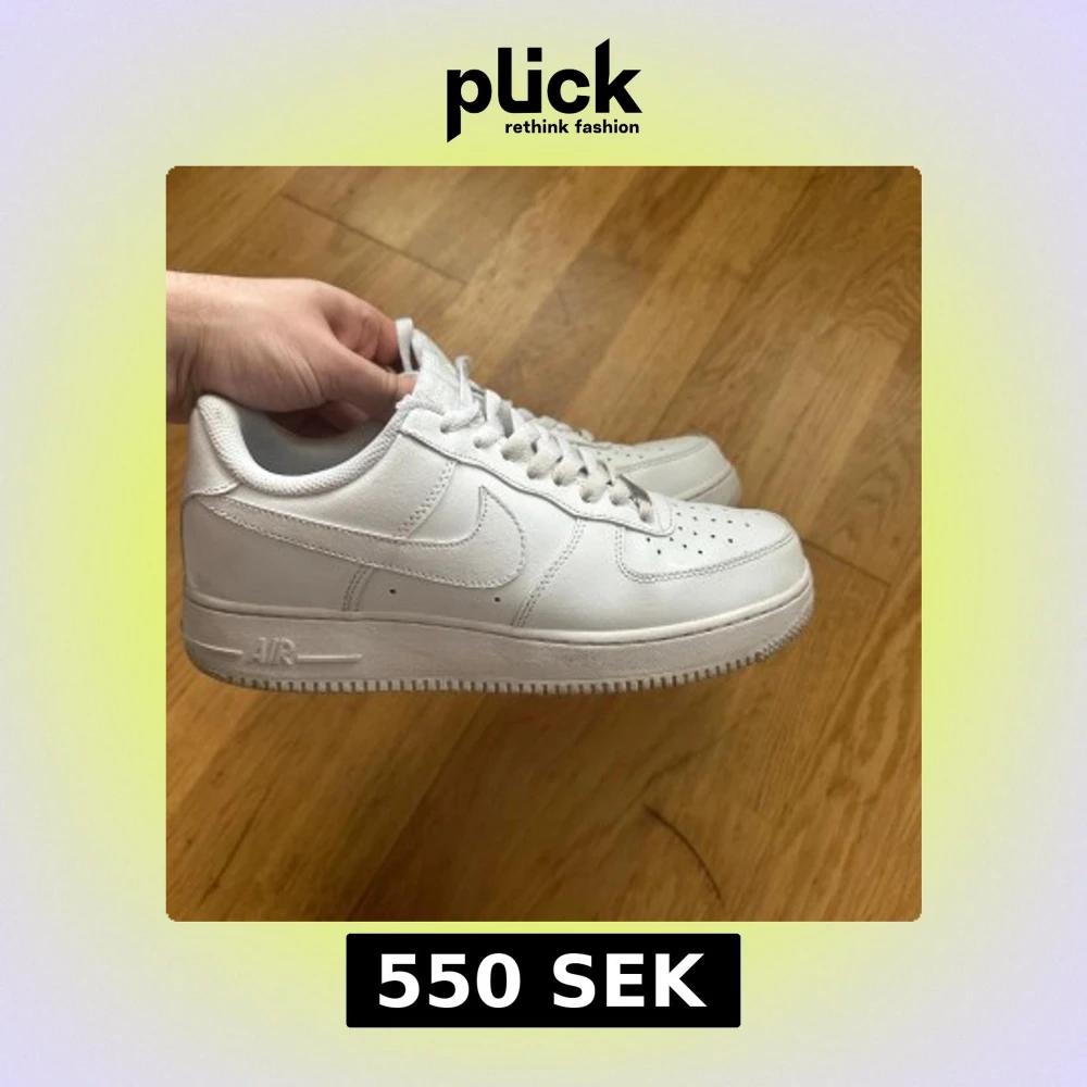 Klassiska helvita Nike Air Force 1 sneakers med snörning och rund tå. Skorna har en platt sula och är tillverkade i skinn. Perfekta för en clean och stilren look. Första till kvarn som gäller.