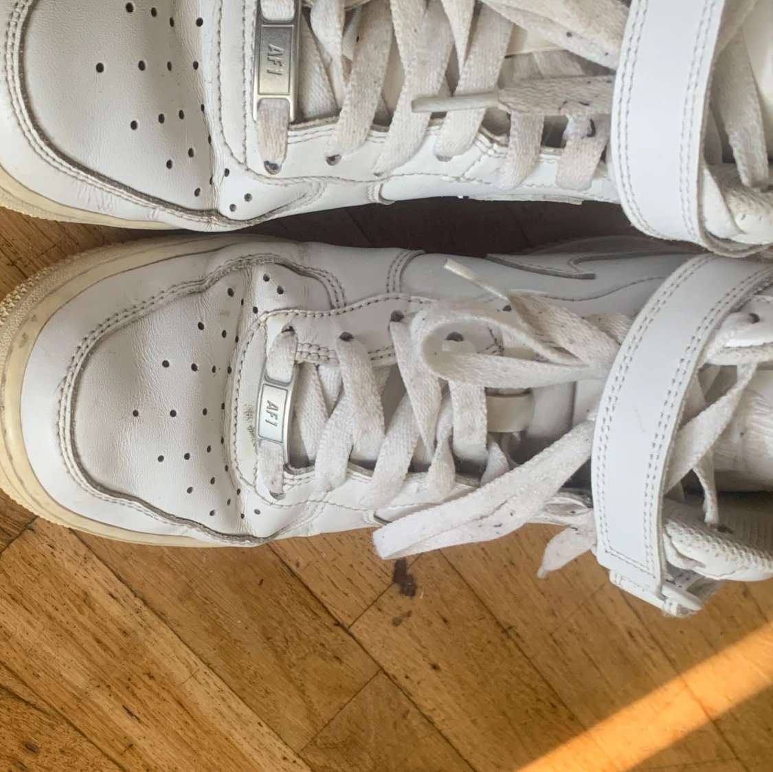 Säljer ett par klassiska vita Nike Air Force sneakers