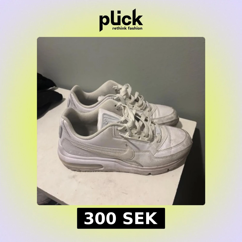 Säljer ett par vita Nike sneakers med snörning och klassisk design. Skorna har en bekväm passform och är perfekta för vardagsbruk. De har en diskret Nike-logga på sidan och en vadderad plös för extra komfort.