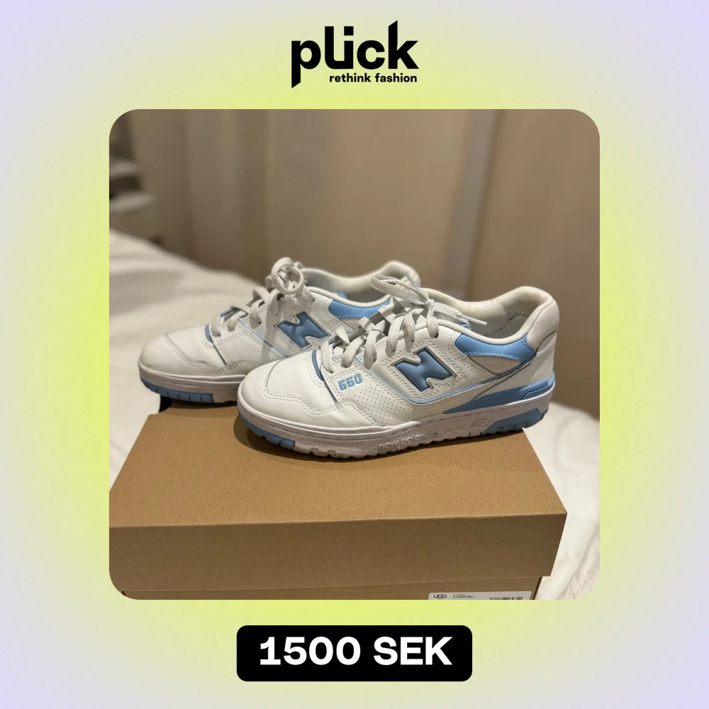 Säljer ett par snygga New Balance 550 sneakers i vitt och blått. De har en klassisk design med snörning och är perfekta för både vardag och träning. Skorna är i mycket bra skick och kommer i originalkartong. Perfekta för dig som vill ha stil och komfort i ett!