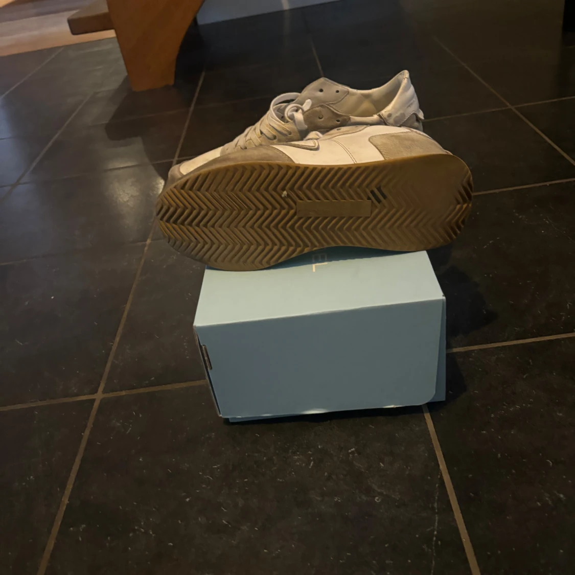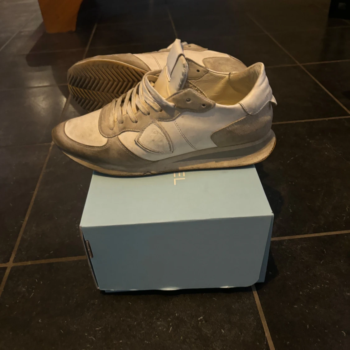 Snygga sneakers från Philippe Model i vitt och grått med klassisk design. Skorna har snörning, rund tå och detaljer i både skinn och mocka. Perfekta för dig som gillar en stilren och sportig look. Sulan är platt och har fiskbensmönster undertill.