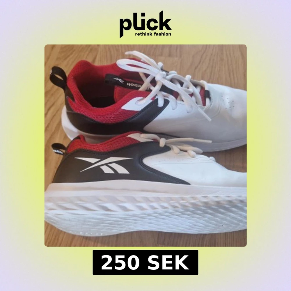 Snygga vita sneakers från Reebok med röda och svarta detaljer. Skorna har en bekväm sula och klassisk snörning. Perfekta för en sportig look eller vardagsbruk. Sula 23,3 cm