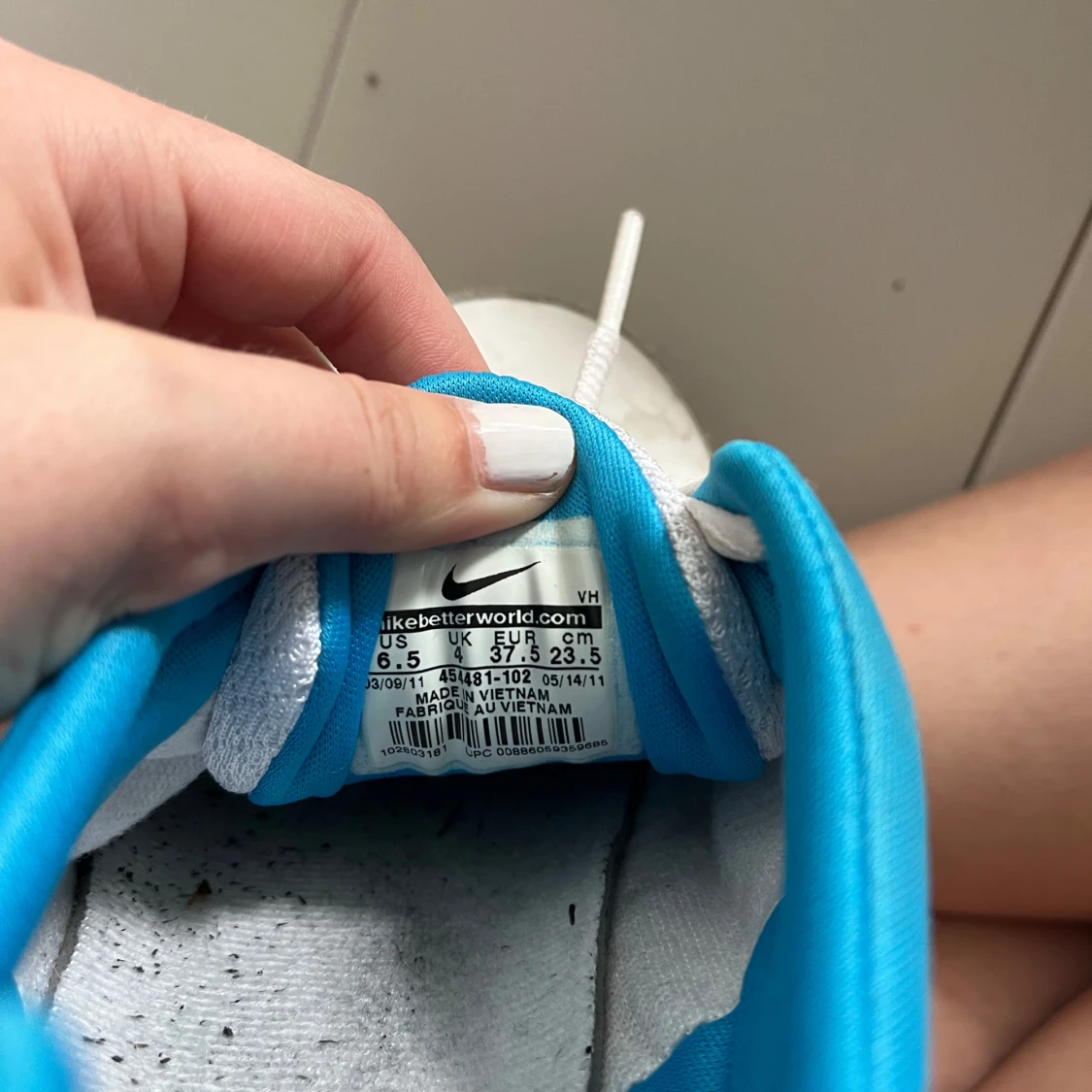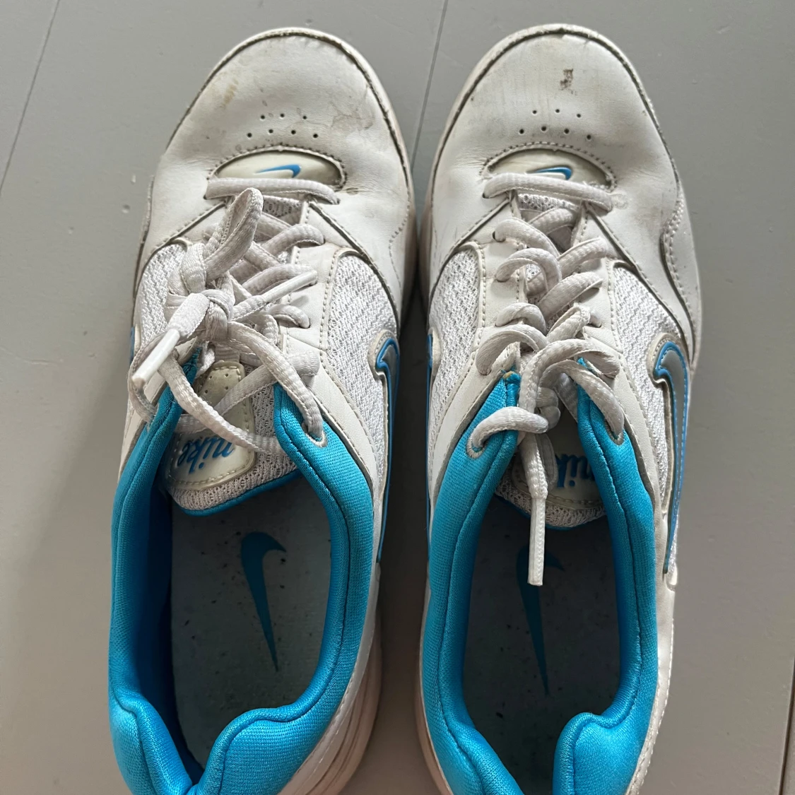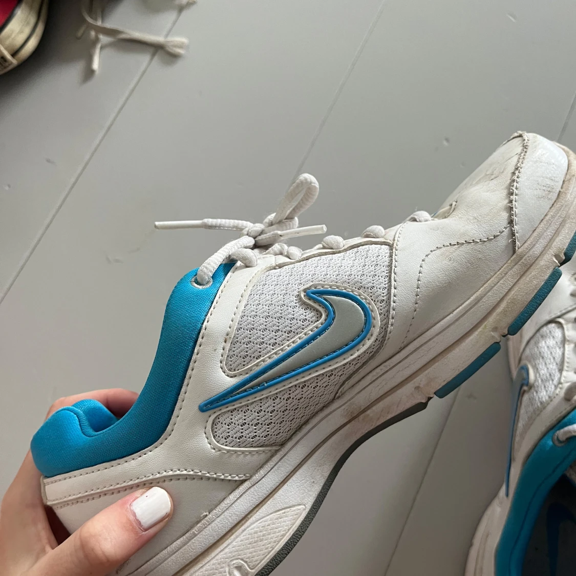Nike sneakers i vitt med turkosa detaljer och klassisk Swoosh-logga. Ovandel i mesh och syntet för bra andningsförmåga, med vadderad häl och platt sula. Perfekta för dig som gillar sportig stil och vill ha bekväma skor till vardagen. Storlek 37,5.