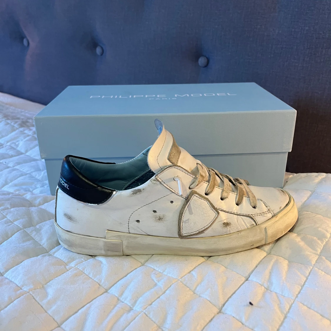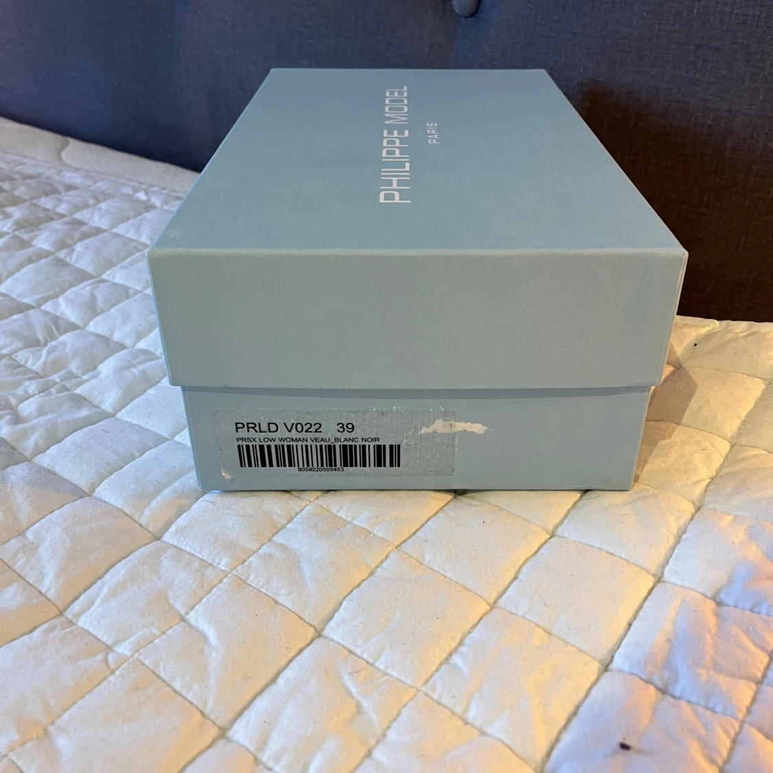 Jag säljer mina vita snygga Philippe Model med svarta detaljer och snörning. Jag säljer de på grund av att det har blivit försmå för mig då jag tycker det är bättre och sälja dom än att bara låta dom så hemma, kvitto kan jag nog leta fram om de önskas och box+påse är med. Hör av dig om du har frågor.