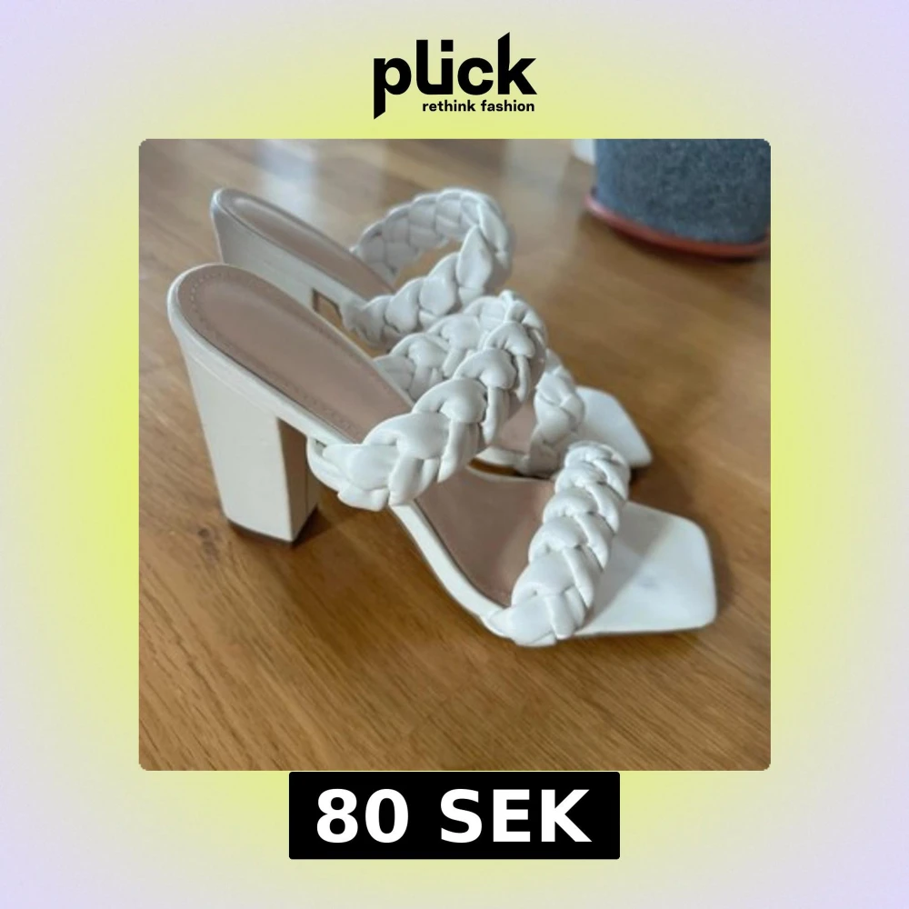 Snygga vita sandaler med chunky klack och två breda, flätade remmar över foten. Skorna har fyrkantig tå och är tillverkade i ett skinnliknande material. Perfekta för dig som vill sticka ut med en trendig och stilren look.