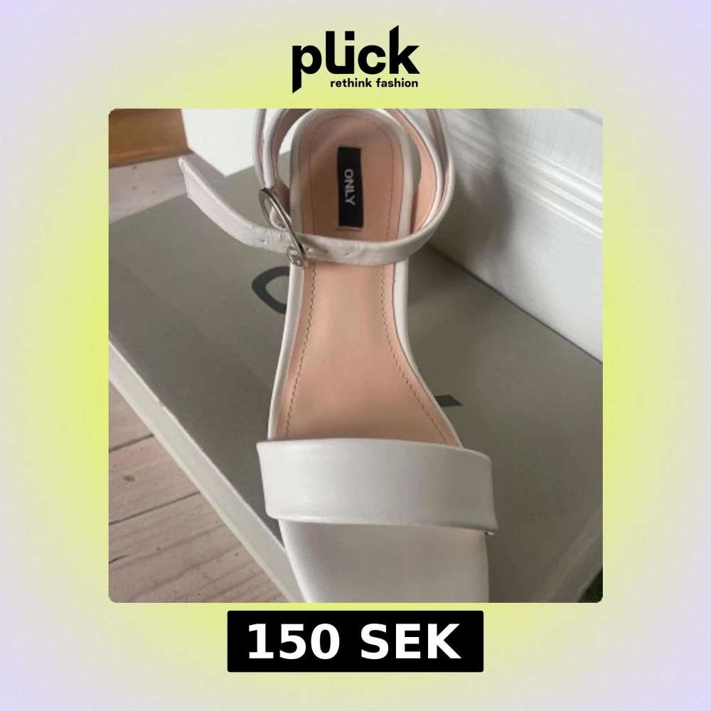 Ett par stilrena vita sandaler från ONLY. De har med bred rem över tårna och justerbart spänne vid ankeln. Skorna har en stabil blockklack och öppen tå, perfekt till vardag och fest.