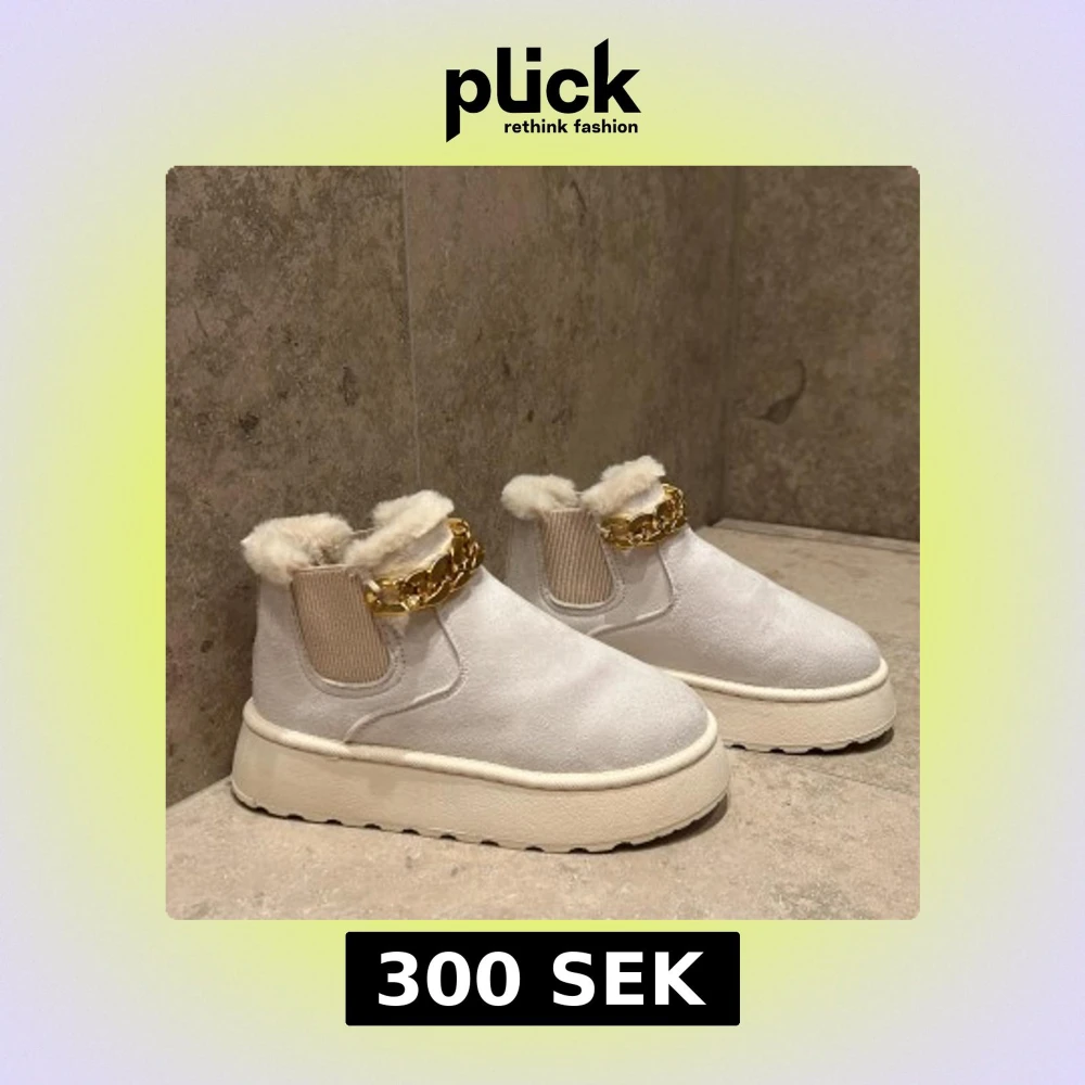 Säljer mina oanvända fantastiskt snygga Uggs med en guldkedja vid fotlänken. De är extremt bekväma och varma till vintern. De är som att gå på moln när man han de på sig🤍 passar till allat såsom tights eller vacker finteroutfit ❄️
