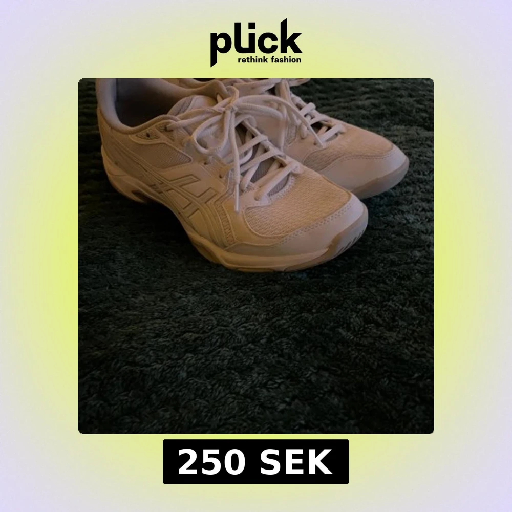 Säljer ett par fräscha vita Asics sneakers i storlek 41,5. Skorna har klassisk design med snörning, meshpaneler och syntetdetaljer. Perfekta för dig som gillar sportig stil och vill ha bekväma skor till vardagen.