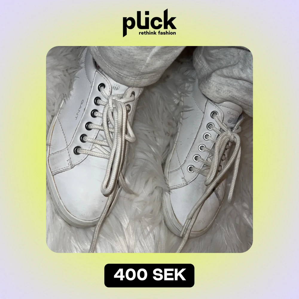 Säljer ett par vita sneakers från Gant i bra skick. De har klassisk snörning och en stilren design med silverdetaljer på hälen. Perfekta för vardagsbruk och passar till det mesta i garderoben. Sköna och stiliga för både vår och sommar! Pris går att diskutera.