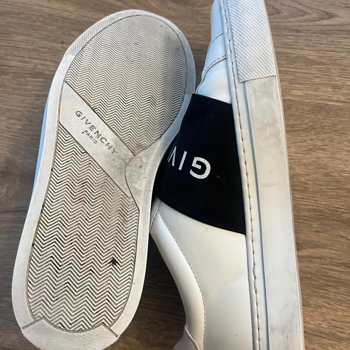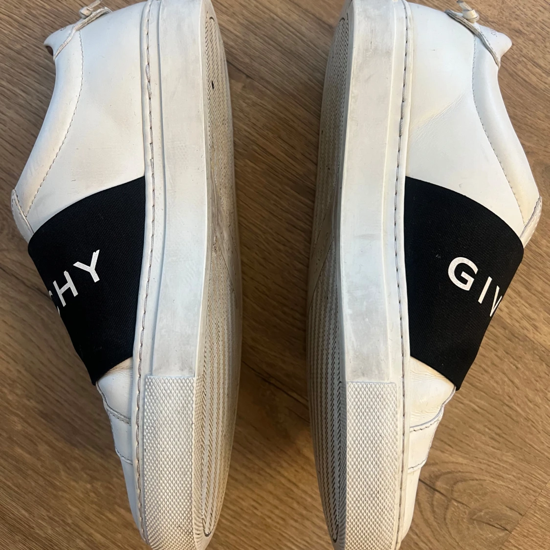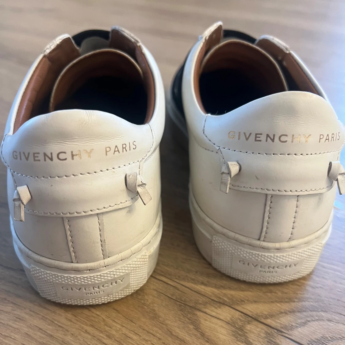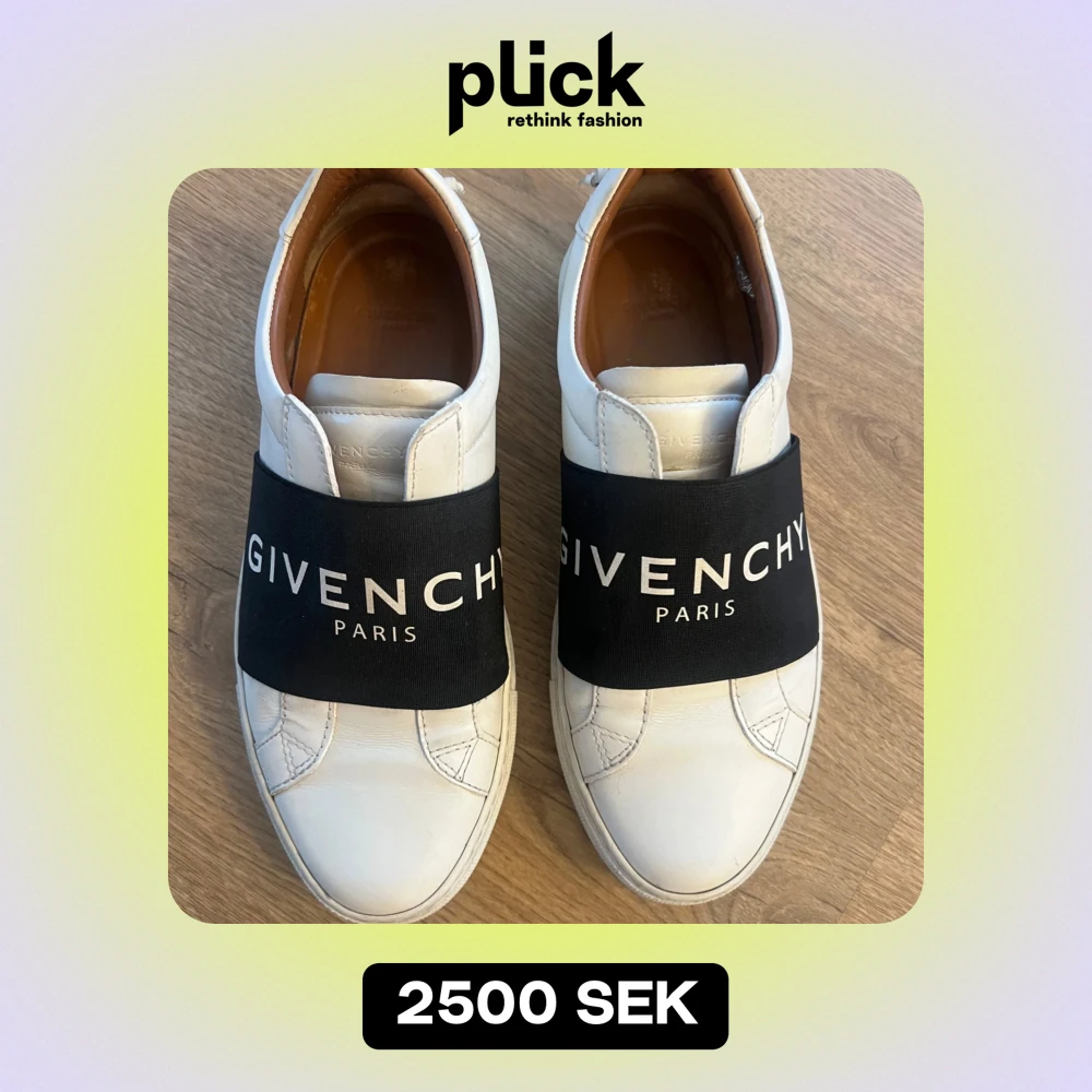 Säljer ett par stilrena vita sneakers från Givenchy i bra skick. Skorna är tillverkade i skinn och har en klassisk design med rund tå och låg profil. Perfekta för både vardag och fest! Använt ett fåtal gånger, säljer pga nya skor. Upplever dem som lite stora i storleken, har vanligtvis 38 men dessa sitter perfekt. Köpta i Milano. Skokartongen, dustbag och kvitto medföljer! Har även påsen kvar om så önskas. Nypris ligger runt 6000:-