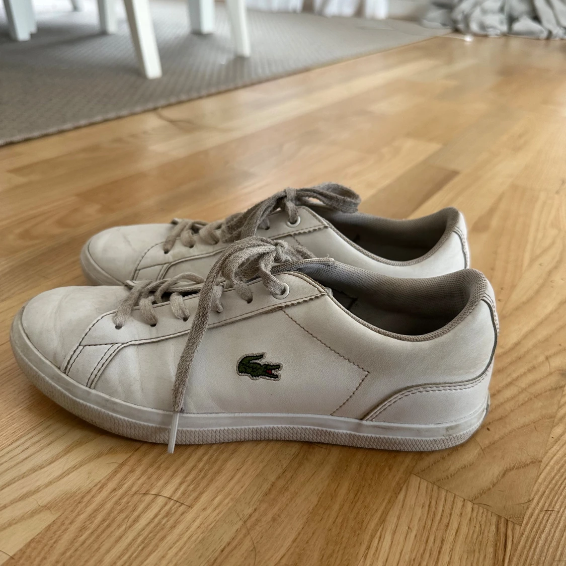 Klassiska vita sneakers från Lacoste med lågt skaft och snörning. Skorna har den ikoniska gröna krokodilen broderad på sidan och är tillverkade i skinn. Perfekta för en clean och stilren look.