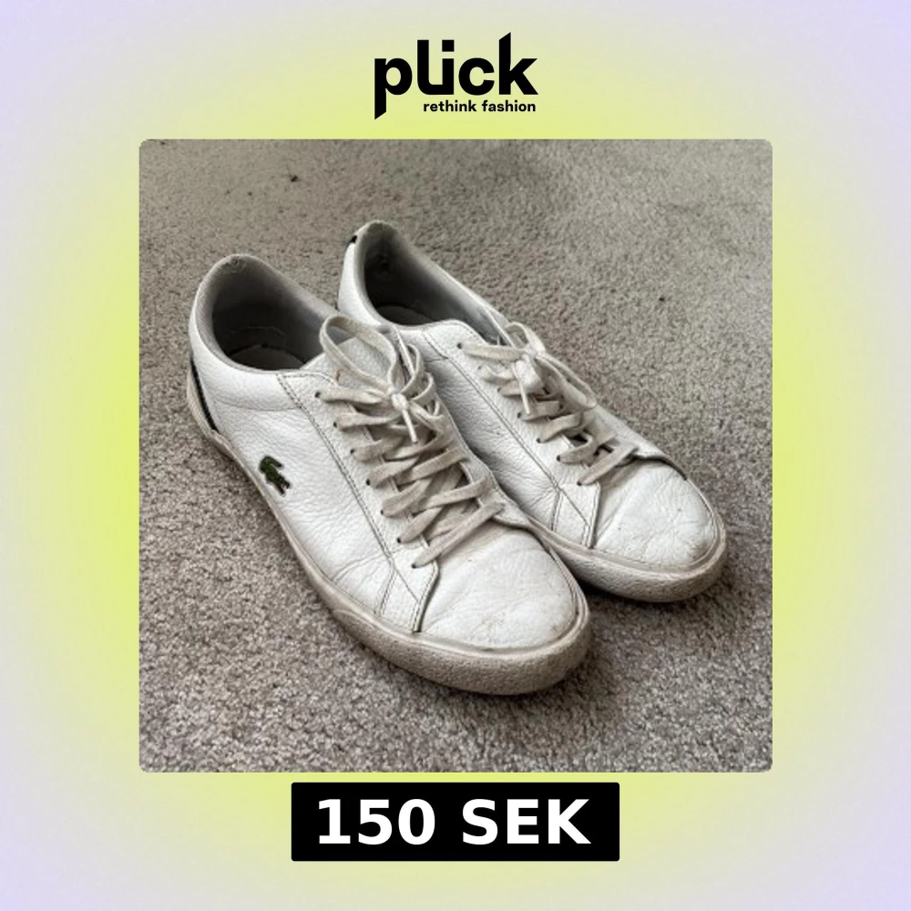 vita sneakers från Lacoste med klassisk krokodillogo på sidan. Skorna har snörning, rund tå och platt sula i gummi. Ovandelen är i vitt skinn med svarta detaljer på hälen. Perfekt för dig som gillar stilrena och sportiga sneakers. Stl 44