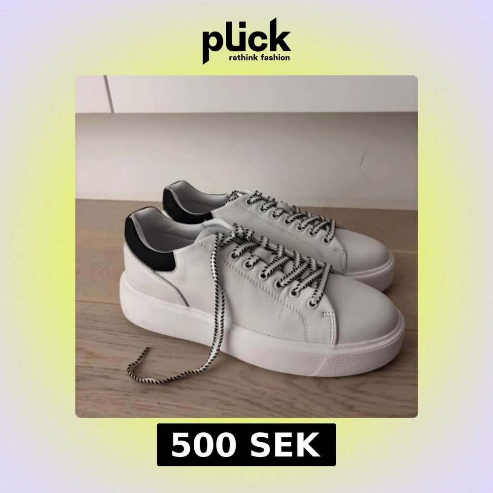 Stilrena vita sneakers från Philip Hog med svart detalj vid hälen och coola svartvita snören. Skorna har en chunky platt sula och är gjorda i skinn för en clean look.