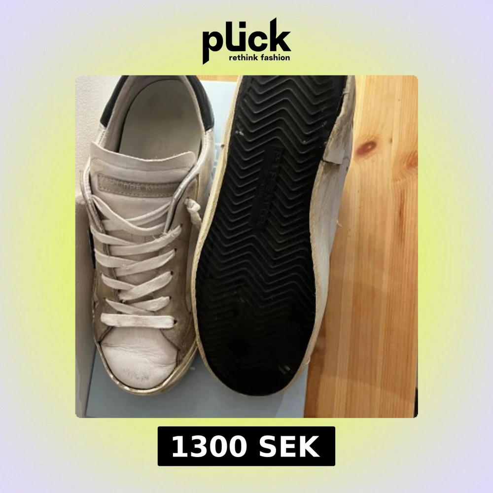 Snygga vita sneakers från Philippe Model med svarta detaljer och snörning och slitningar som är en del av designen. Skorna har en klassisk design med en bekväm passform och är perfekta för en stilren look. (Pris kan diskuteras)