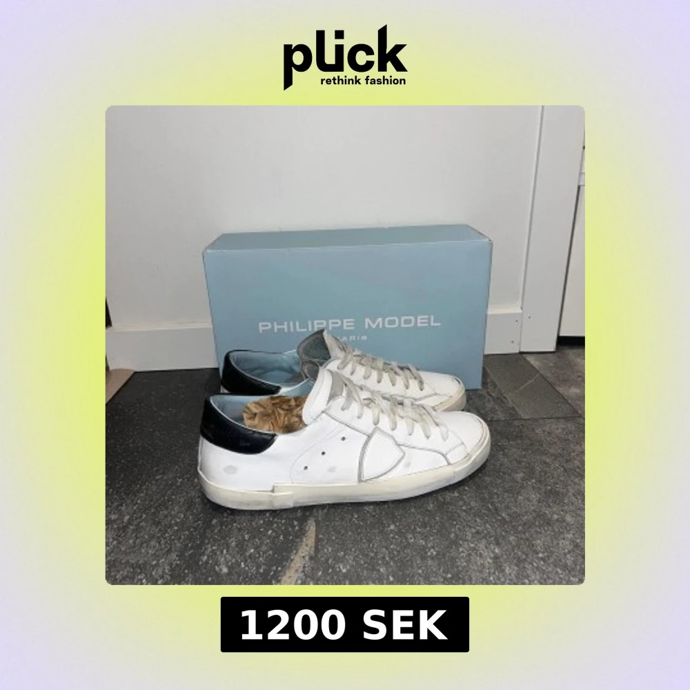 Tja säljer ett par sjukt feta Philippe Models. Jag säljer dom för att dom har blivit för små för mig. Storlek 41 men passar även 42 7/10 skick. Ända defekten är att dom är lite slitna på sulan vid hälen. Priset är ej hugget i sten. Hör av er vid minsta fundering 🤩