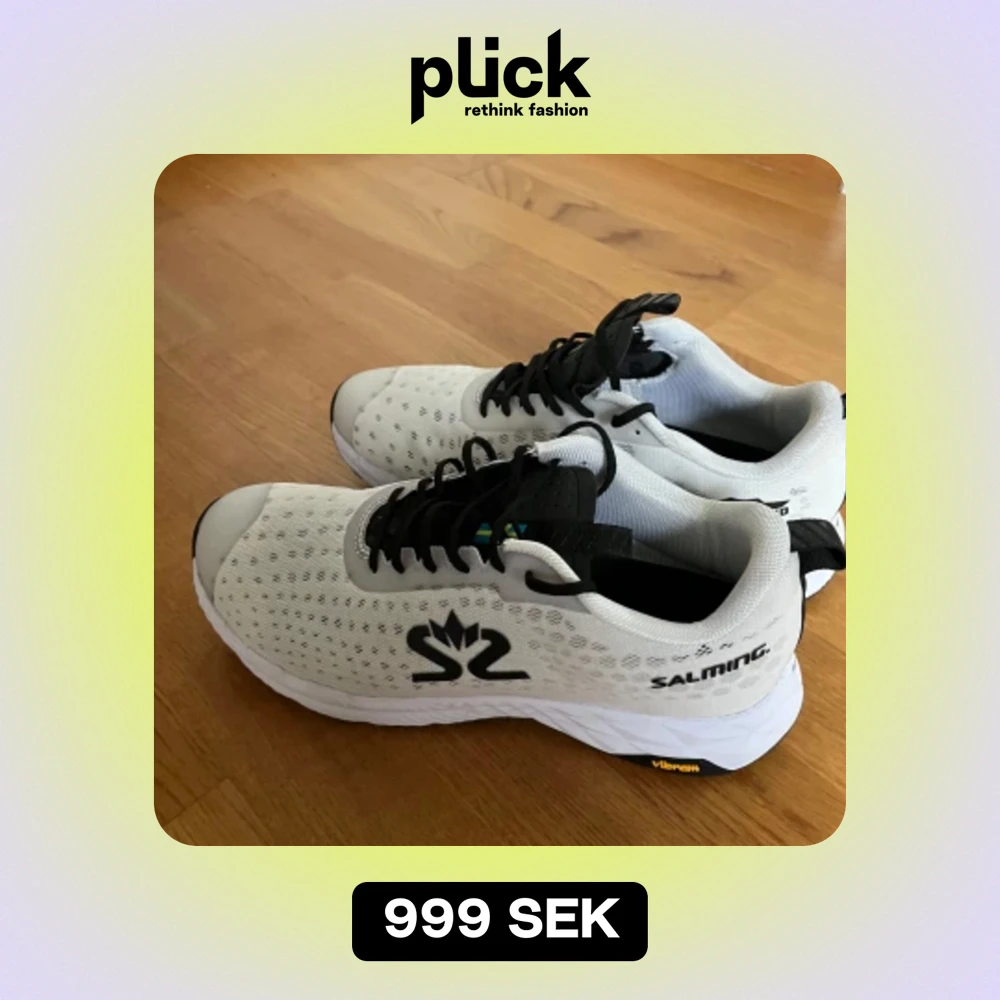 Säljer ett par vita Salming sneakers i nyskick. De har en stilren design med svarta detaljer och snörning. Perfekta för träning eller vardagsbruk. Skorna har en bekväm passform och är tillverkade i syntetmaterial. Köpt för 1885 säljer nu för 999