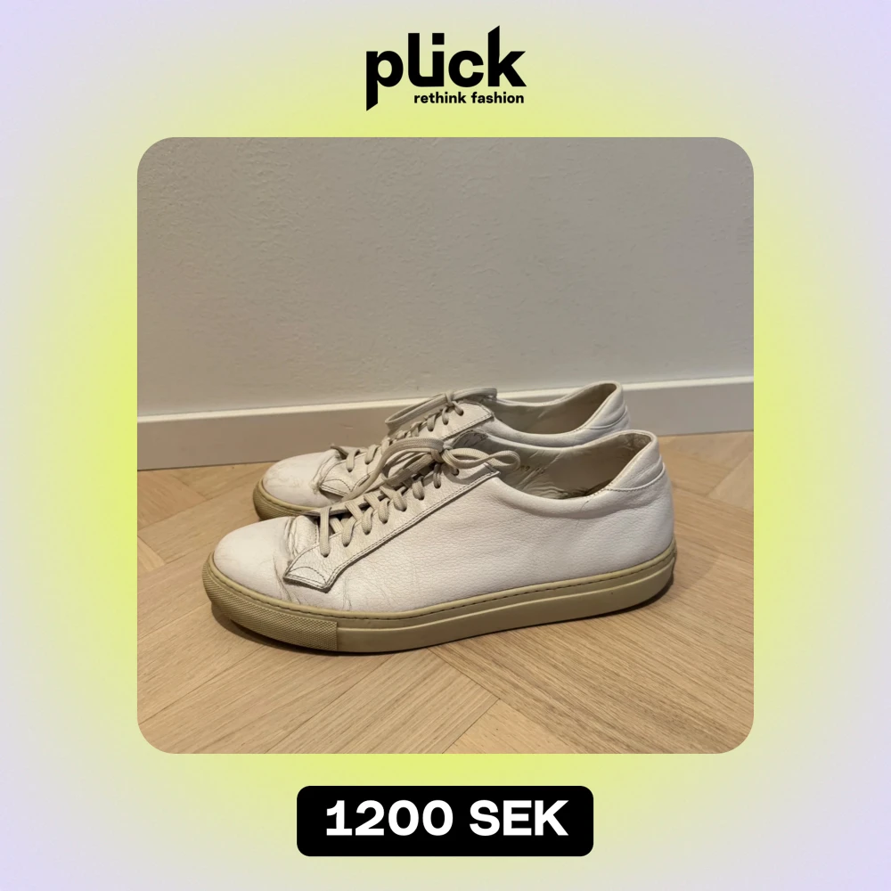 Säljer ett par vita lädersneakers med snörning från Sweyd i modellen 055. De har en klassisk design och är i bra skick med lite slitage på sulan. Perfekta för vardagsbruk och passar till det mesta i garderoben. Nypris 2899 kr säls för 1200 kr