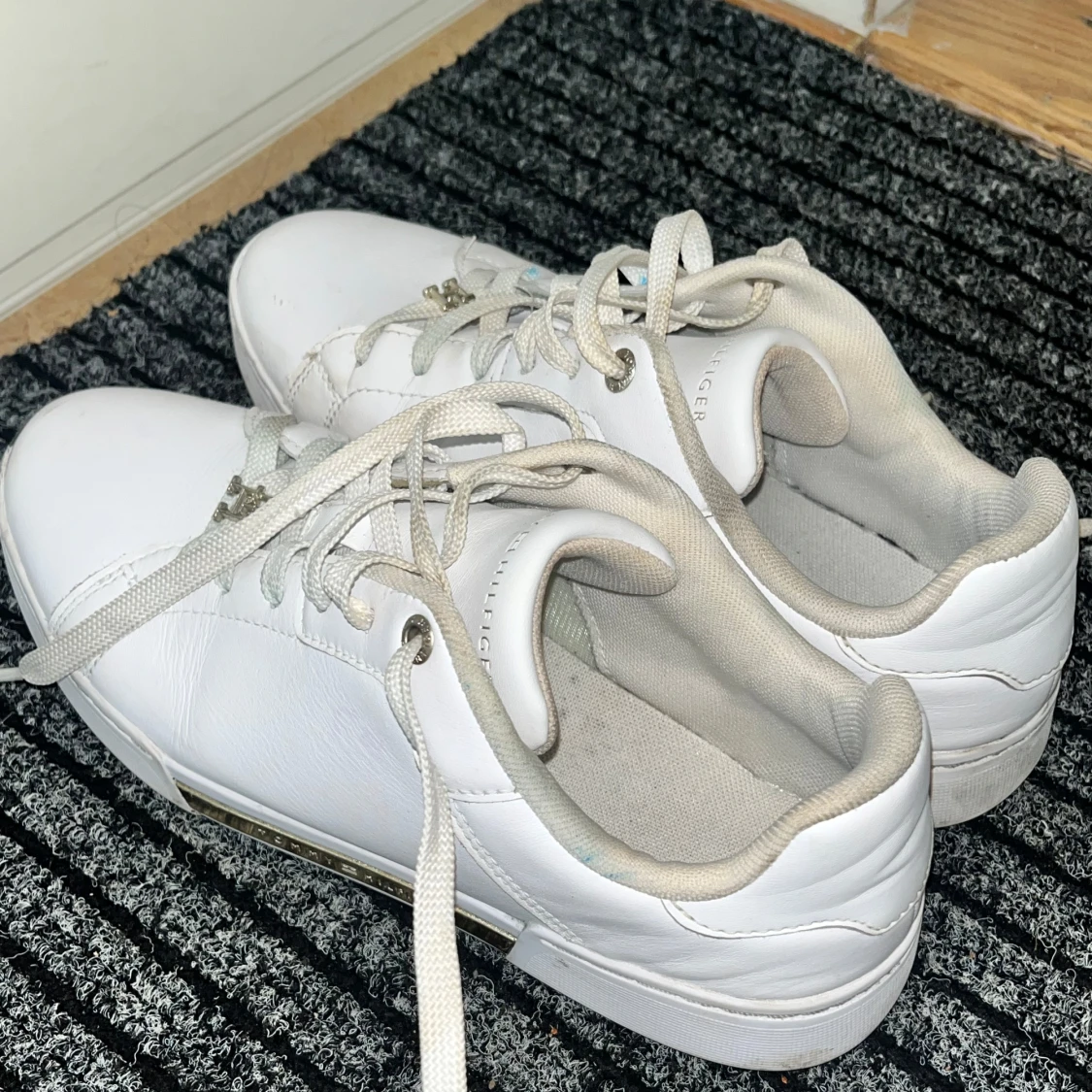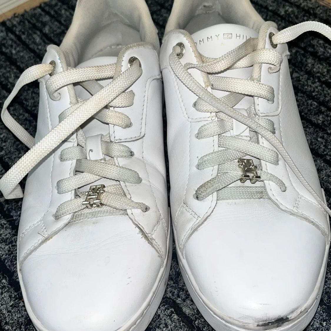 Snygga vita sneakers från Tommy Hilfiger med klassisk design. Skorna har snörning, rund tå och är tillverkade i skinn. Detaljer som metallögla och logga på tungan samt sula med stjärnmönster. Perfekta för en clean och stilren look.