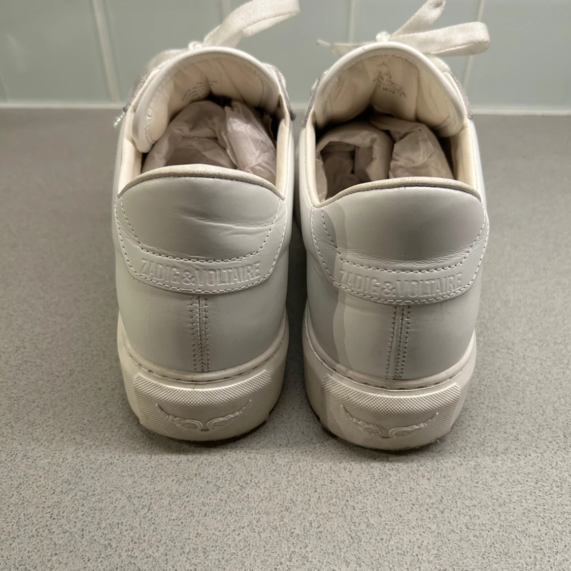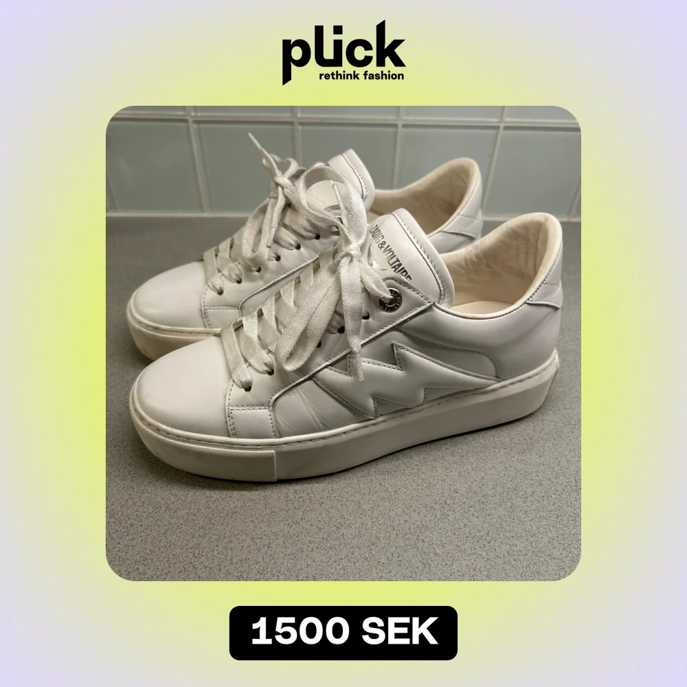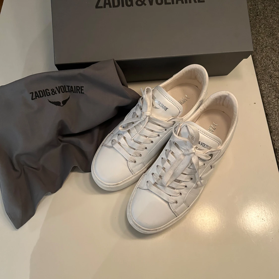 Säljer ett par snygga vita sneakers från Zadig & Voltaire utan synliga defekter, köpta i augusti och är väldigt sparsamt använda. De har en cool design med snörning och en bekväm sula. Skorna kommer i originalkartong med dustbag. Original priset är 3600, men jag säljer dom för 1500 vid snabb affär. Budgivning om fler är intresserade. Hör av dig om du vill ha fler bilder! 💗(kan mötas i Stockholm)