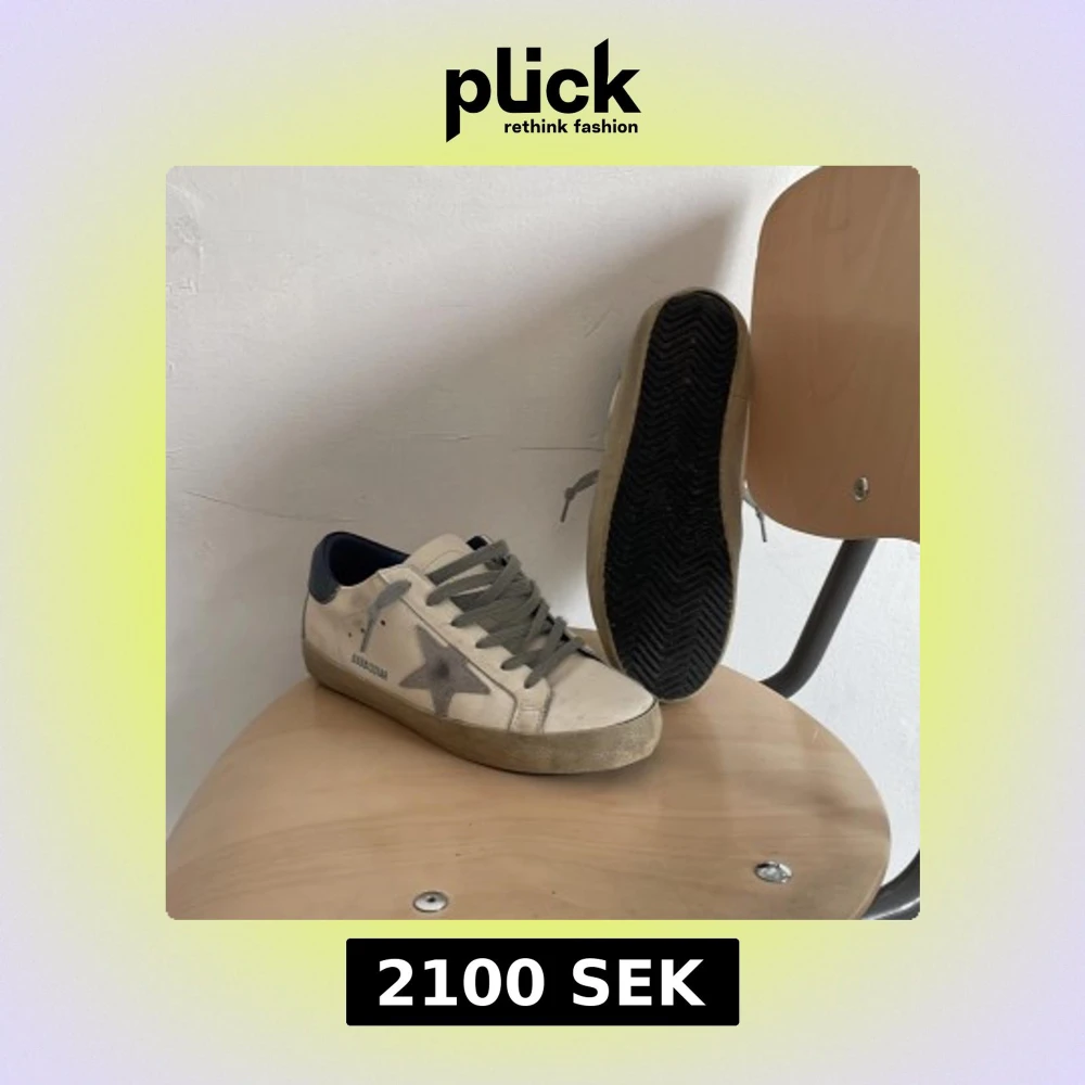Säljer ett par vita sneakers från Golden Goose med grå snörning och grå stjärna på sidan. Skorna har blå detalj vid hälen och beige sula. Perfekta för en avslappnad och trendig stil. De är till 100 procent äkta och jag har box till dem. Har använt dem 4 gånger.