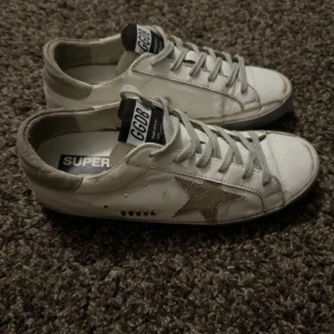 Snygga vita sneakers med en grå stjärndetalj på sidan och matchande grå snörning. Skorna har en klassisk design med låg profil och är perfekta för en avslappnad stil.