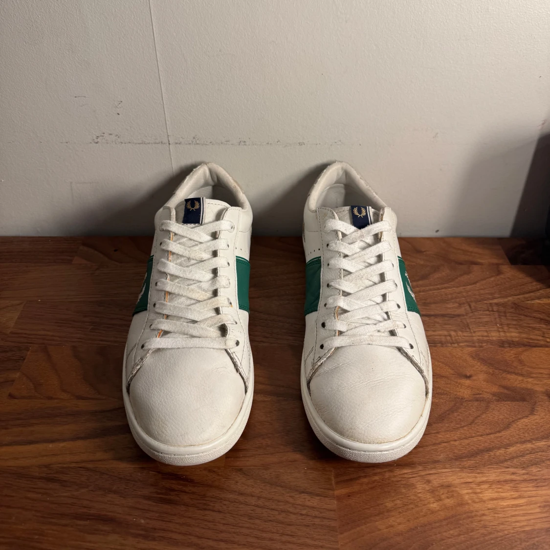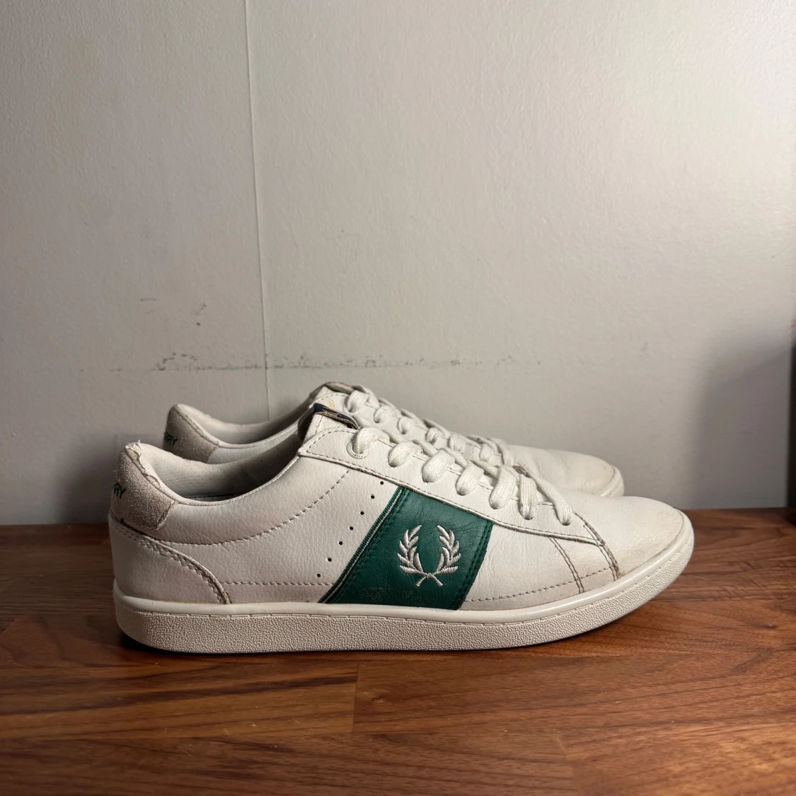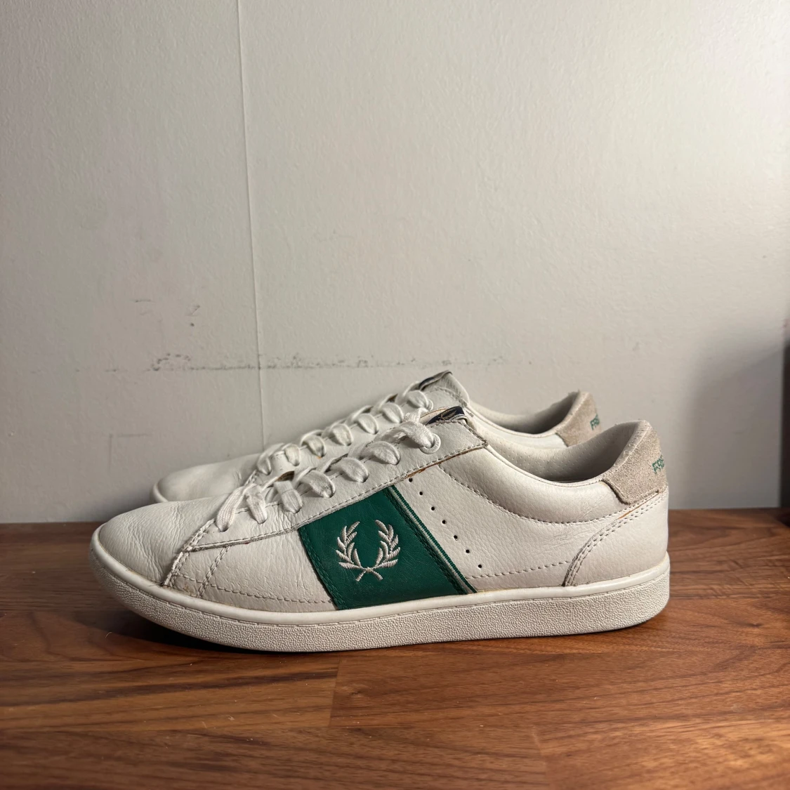 Säljer ett par snygga och stilrena vita sneakers från Fred Perry, original pris runt 1500kr. Skorna är i fint skick och passar perfekt nu till sommaren.