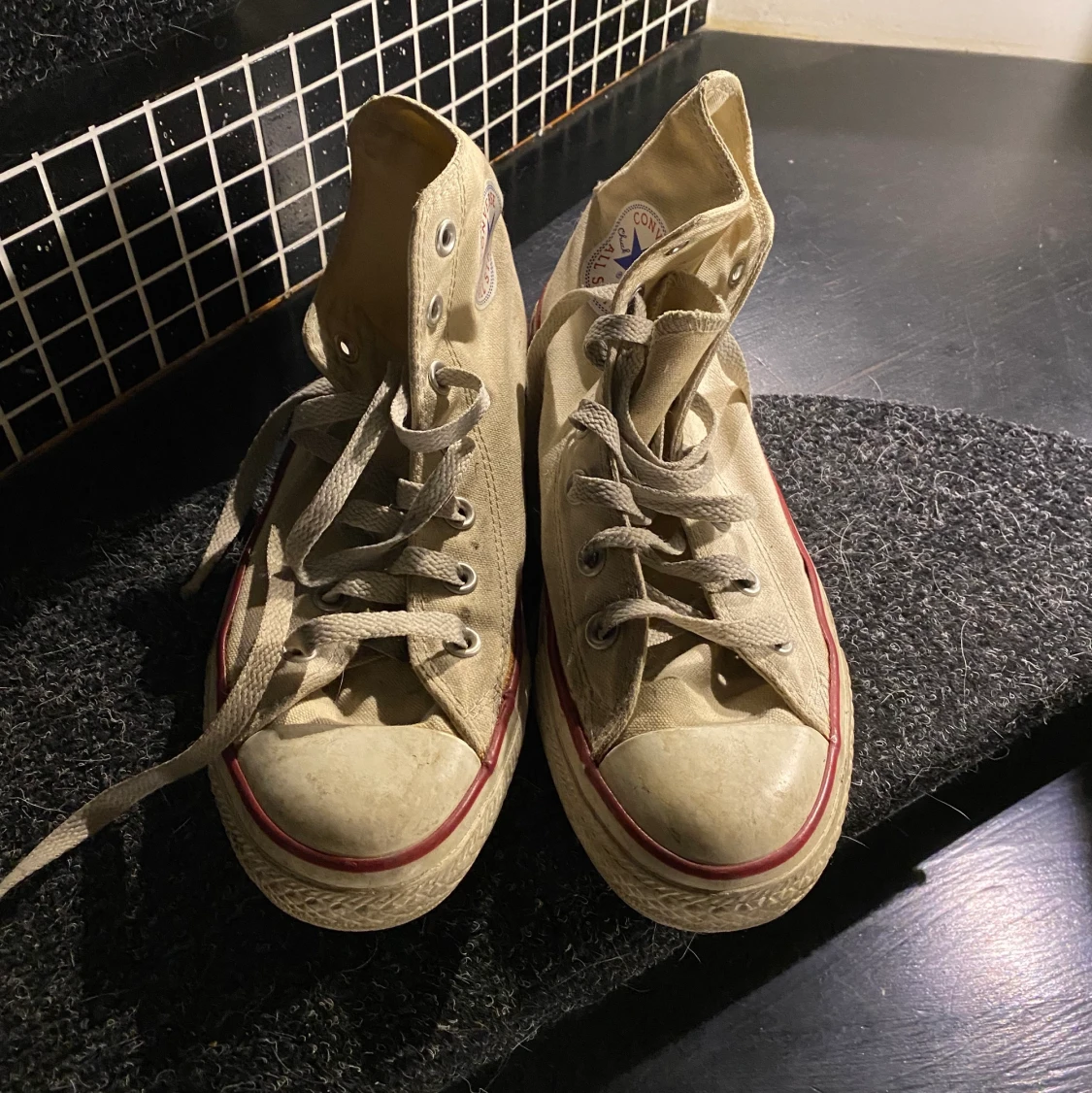 Säker dessa vita snygga Converse🙌använda men bra skick! Stl 38💞pris kan diskuteras!
