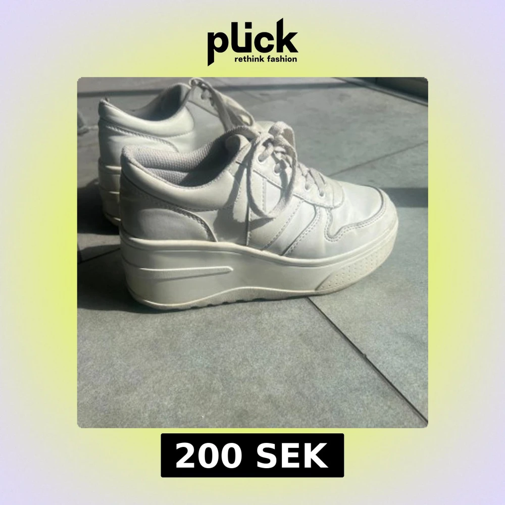 Snygga vita sneakers med hög platåsula och snörning. Skorna har en unik sula med stjärnmönster och är perfekta för att ge lite extra höjd. Överlag ett väldigt fint skick!💗💗
