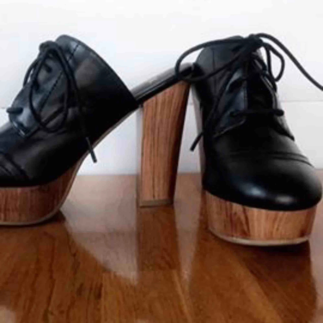 Svarta klackskor. Aldrig använda då jag pga sjukdom inte klarade av att gå i dem när de inte har någon hälrem. rätt små och skulle nog passa en med storlek 36 utmärkt. 100kr eller bud.