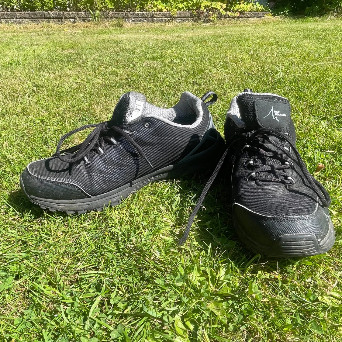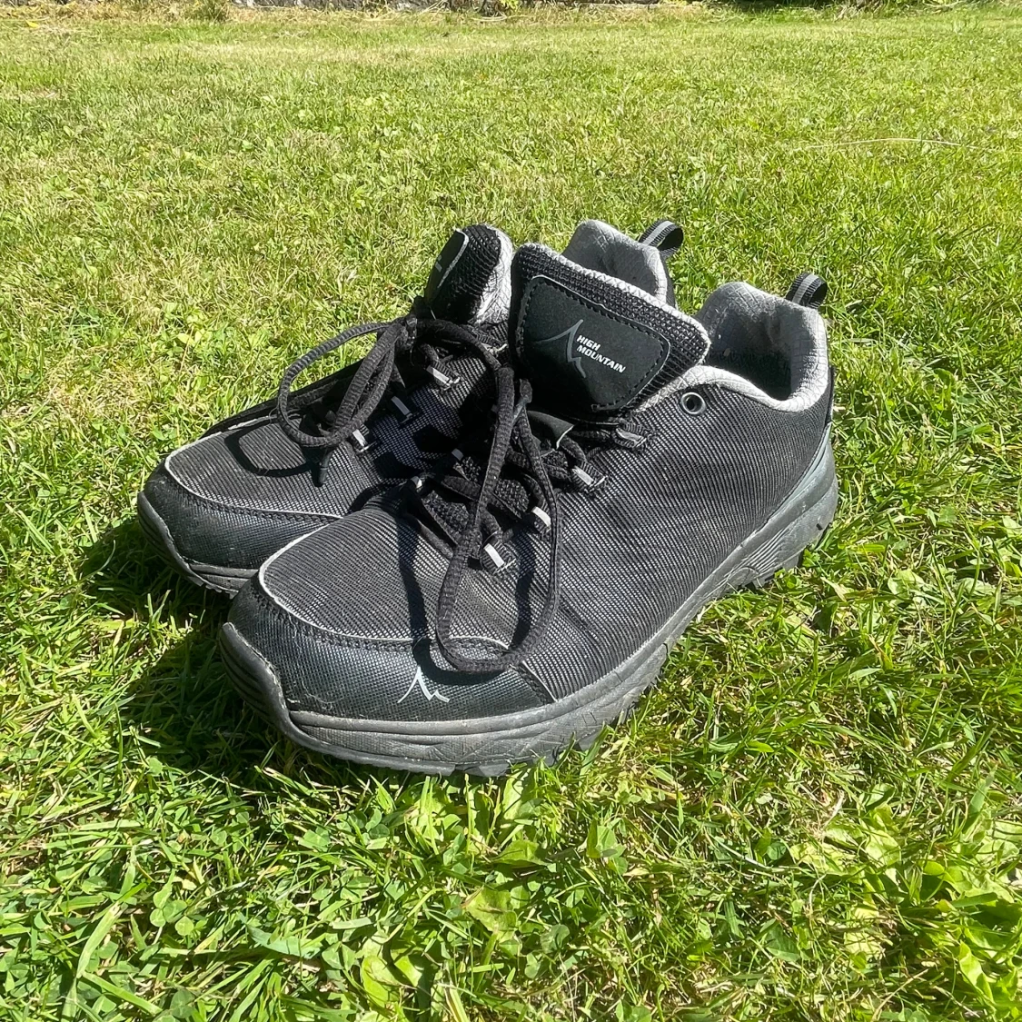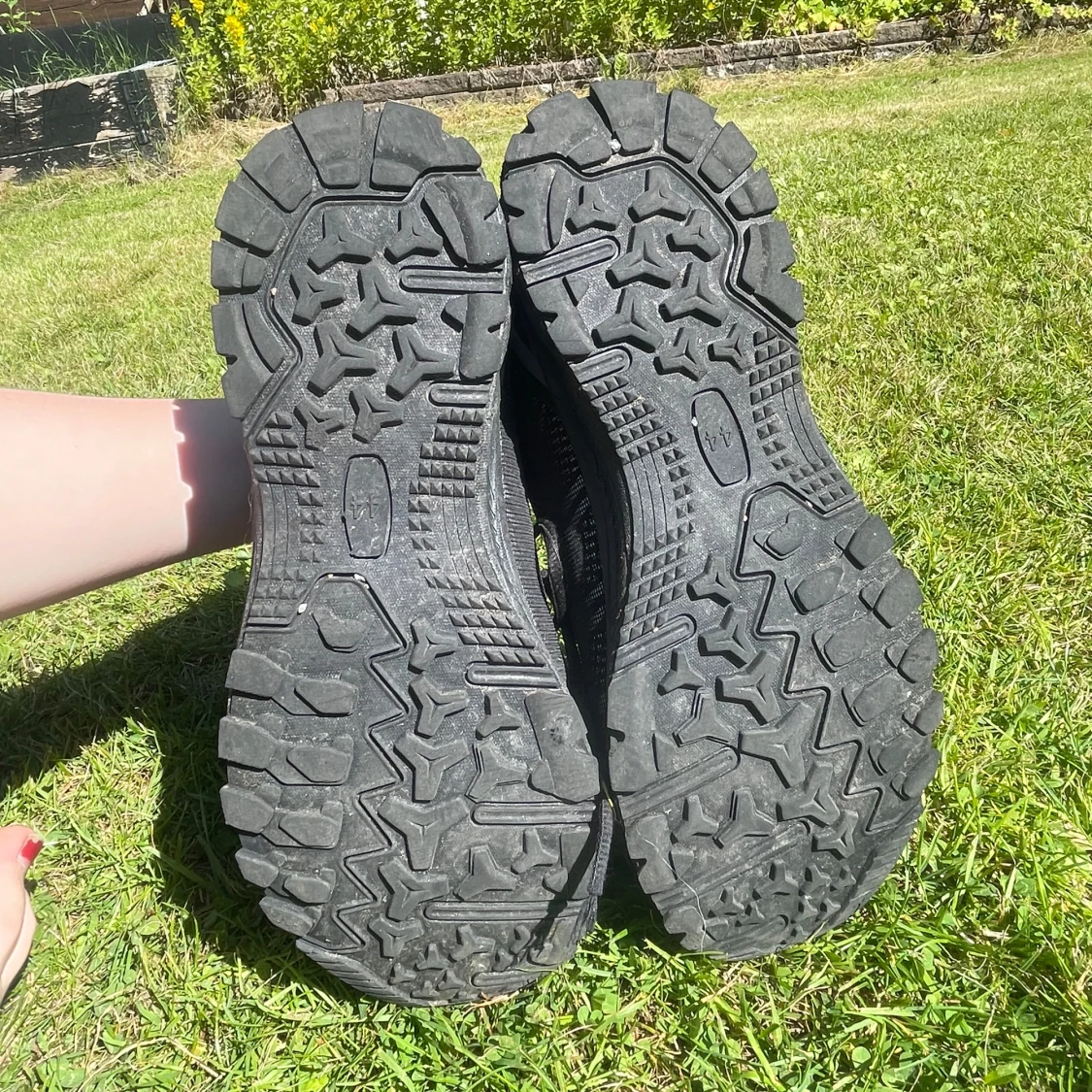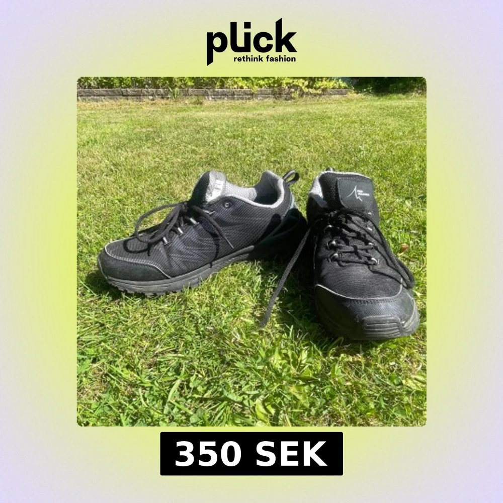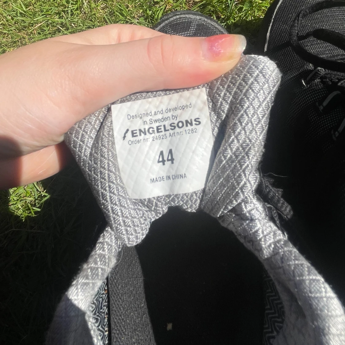 Svarta sneakers från Engelsons med robust sula och snörning. Perfekta för utomhusaktiviteter med slitstark design och bekväm passform. Lätt reflekterande mönster på och water resistant