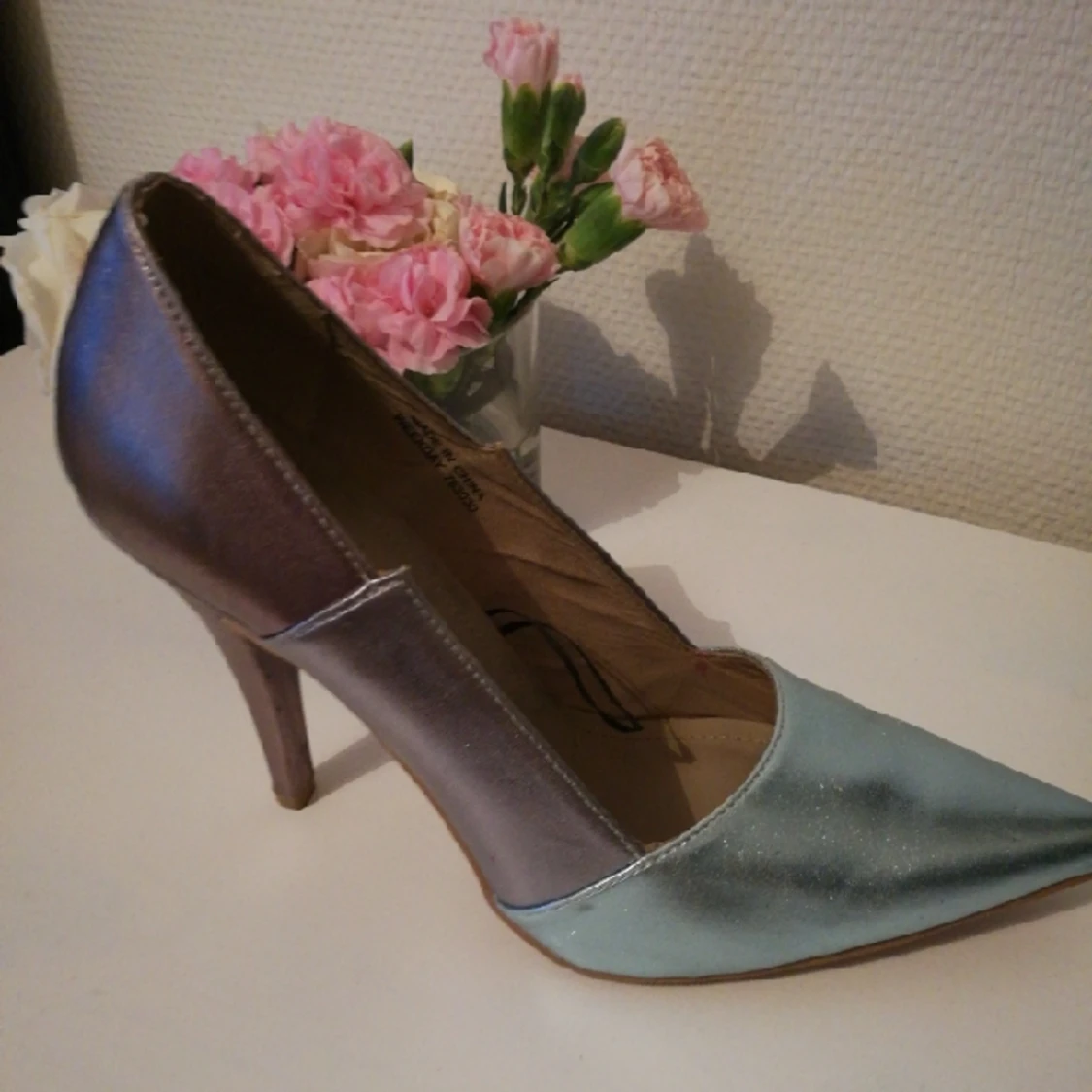 Tredelade silverklack från Weekday. Aningen små i storlek, annars nästan helt oanvända! ca. 7 cm klack