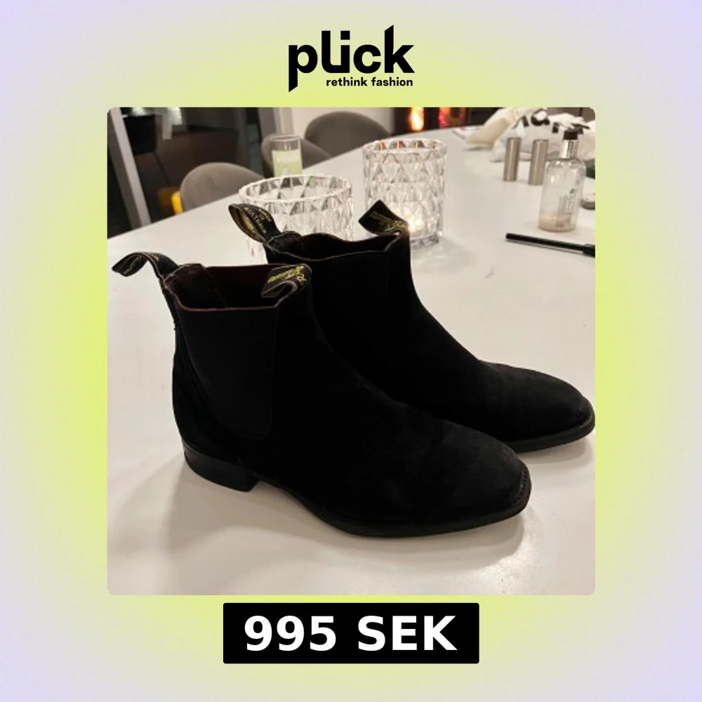Mycket fina svarta RM Williams boots i svart mocka , storlek 38 med dragflikar för enkel påtagning. Perfekta för en stilren look. Skorna är handgjorda i Australien och kostar mellan 5000-6000 kr nya. Bootsen är i fint skick. Skorna har varit hos skomakare och fått en tunn gummisula på lädersulan för att bättre stå emot regn och rusk. 1 mycket bra pris för dessa fina bords.