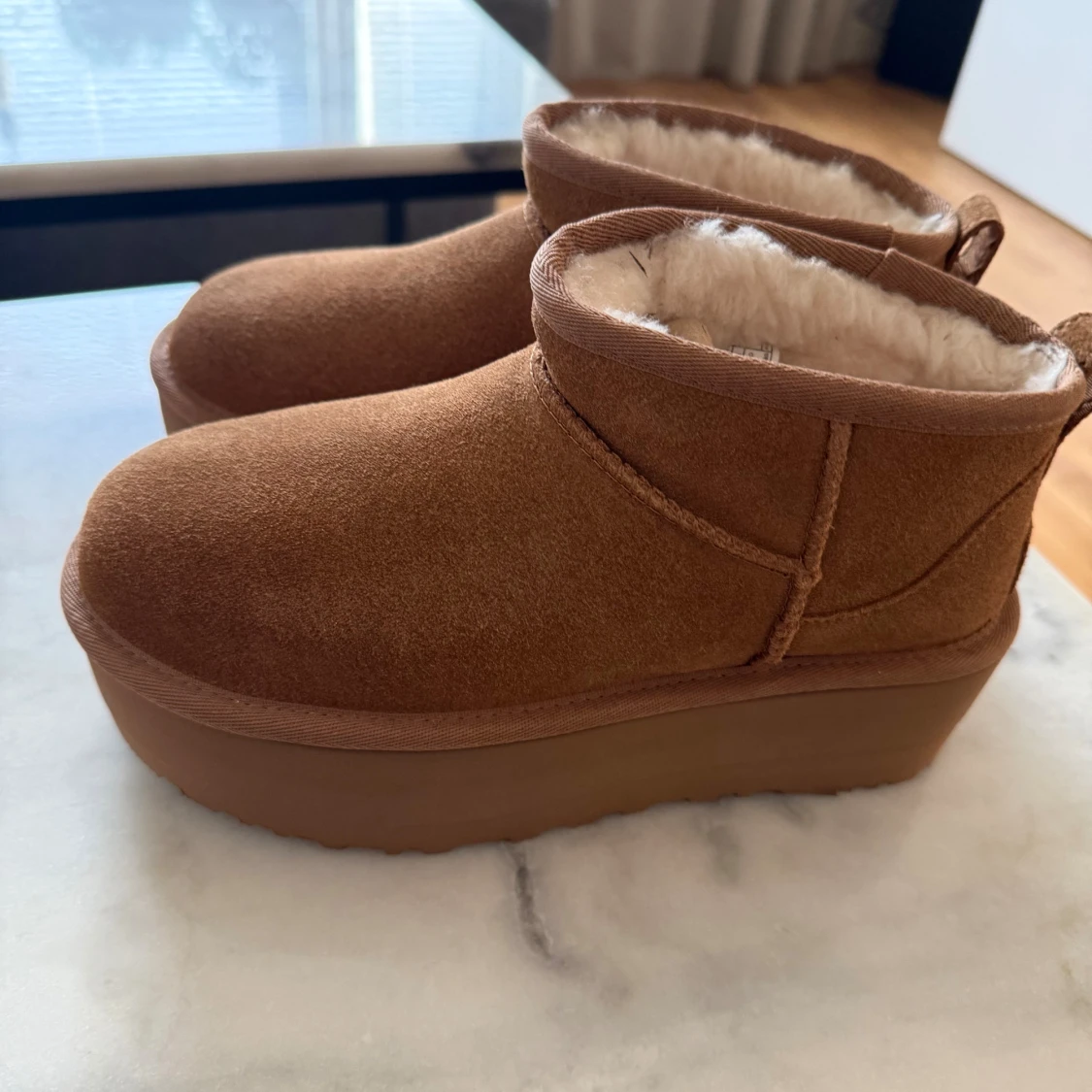 Säljer ett par helt oanvända UGG ultra mini platforms i färgen chestnut. Original skokartong finns tyvärr inte men aldrig använda. Original pris 2199:-