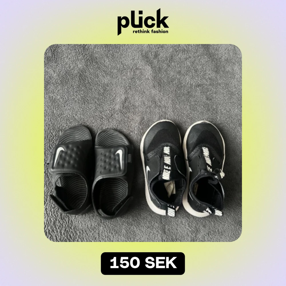 Nike skor storlek 26. 70 kr Badtofflor storlek 25. 50 kr Nike byxor storlek 104. 40 kr Paketpris 150 kr