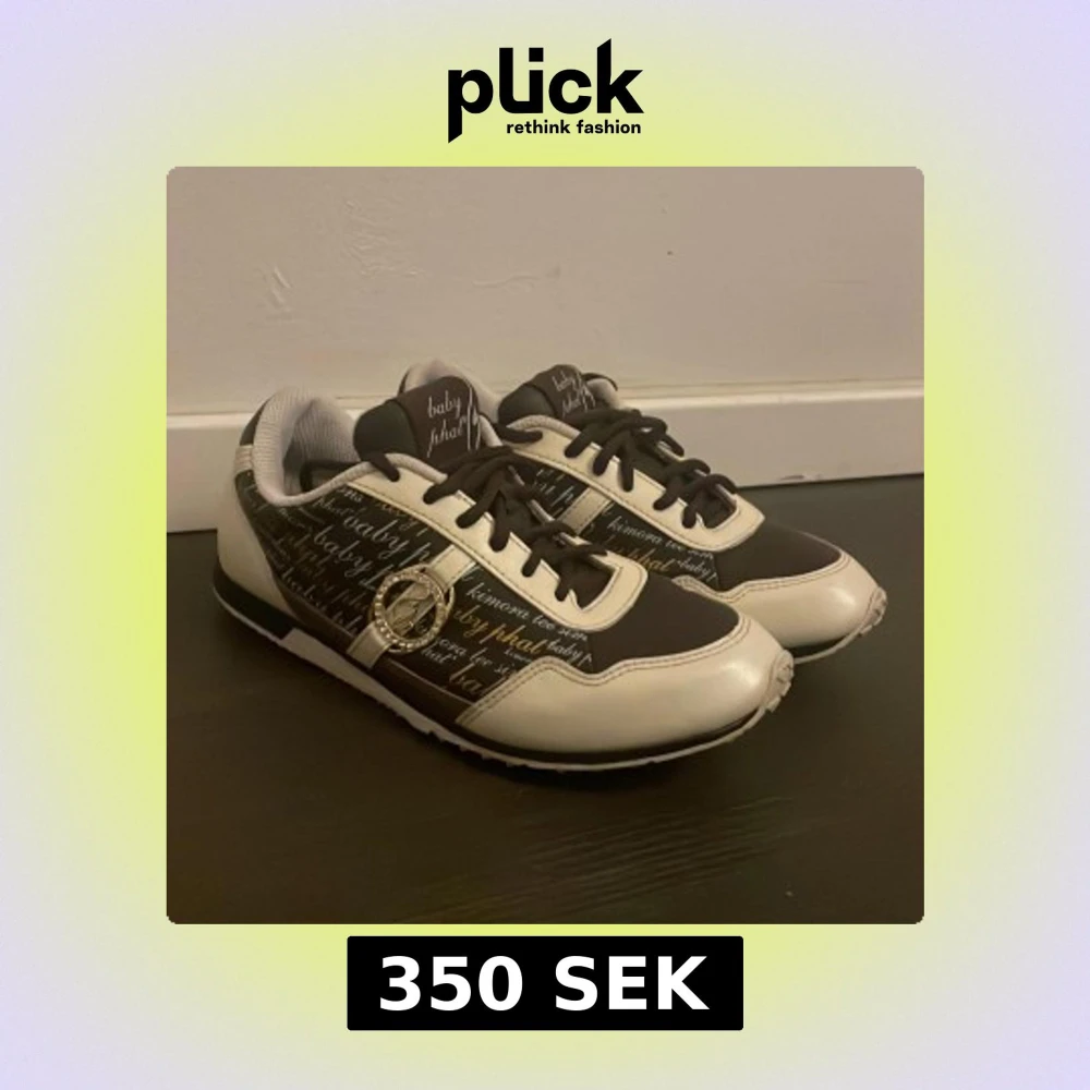 Brun/beige/vit/guld sneakers från Baby Phat med mönster och bling. Använda två gånger. Strl 38 men aningen små.