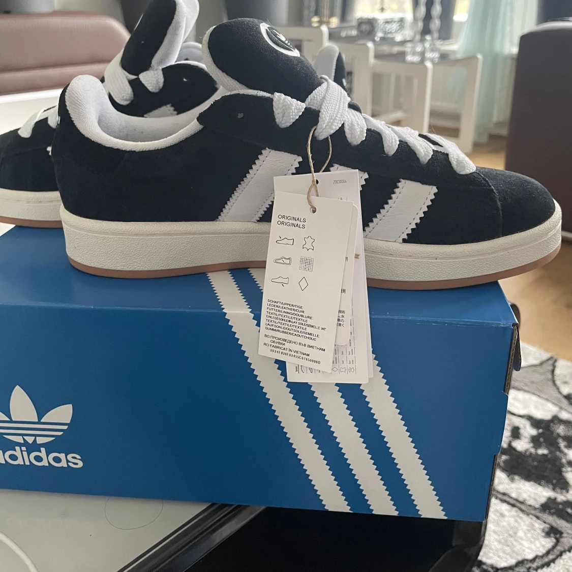 Helt nya, oanvänt campus adidas skor! De kommer med svarta snöre och kartong/låda. Original lappen är kvar med. Populära, säljer för att de passar inte!