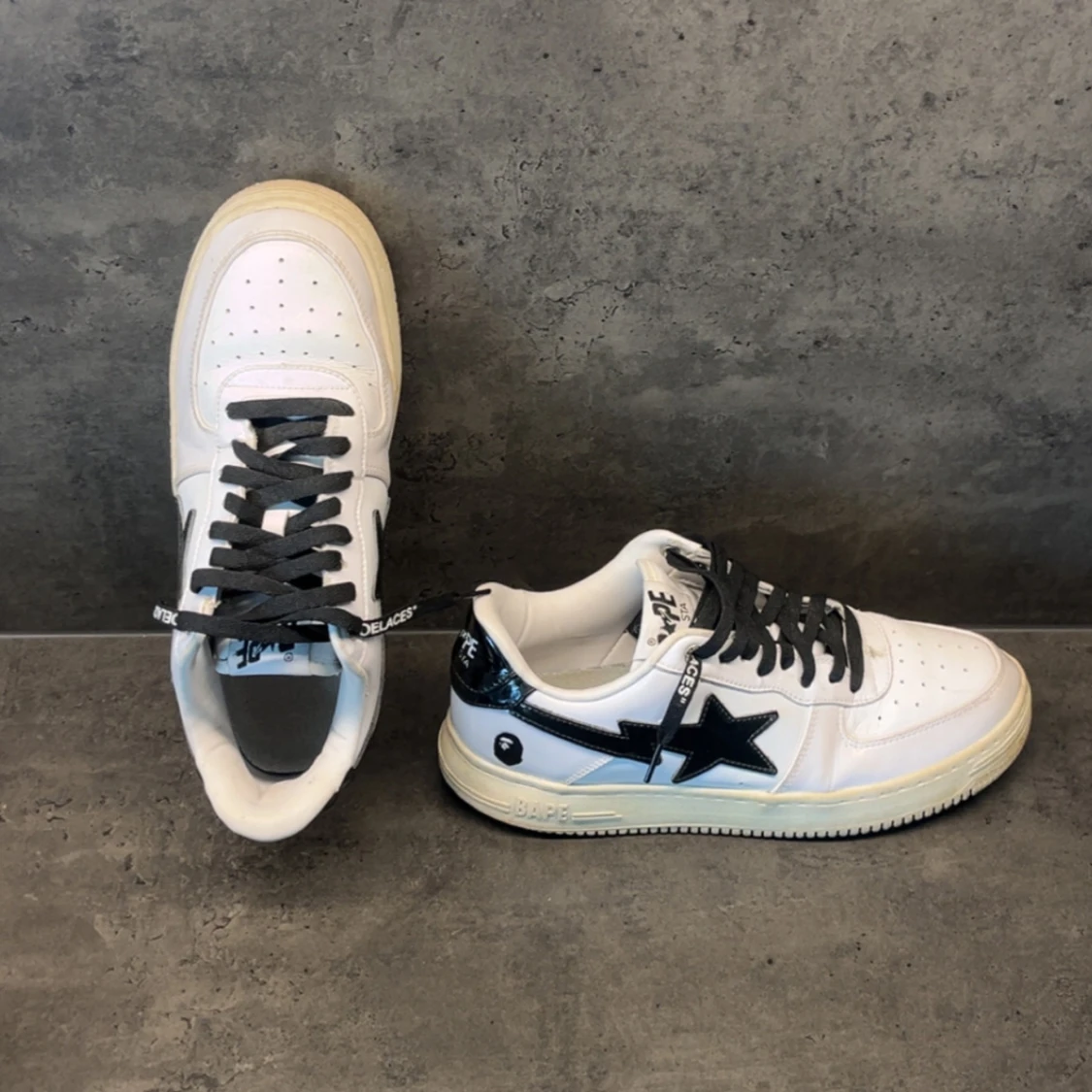 Riktigt feta vita bapestas med off white laces! Lagom anvĂ€nda men fortfarande i bra skickđŻ Mer frĂ„gor privat!