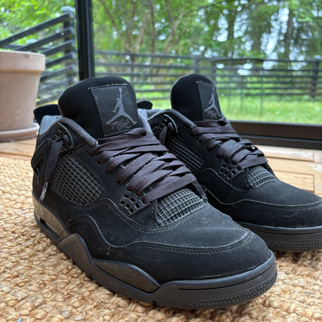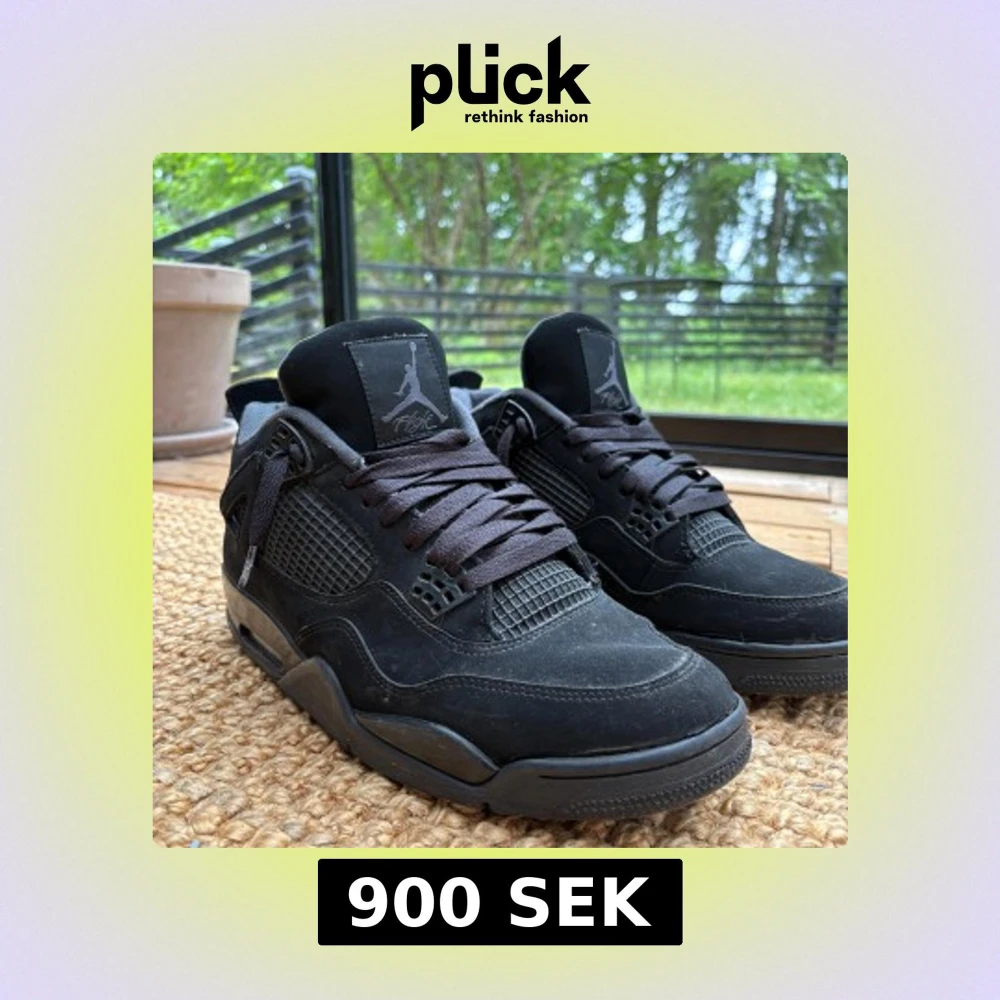 Jag säljer ett par air Jordan 4 black cat. De är använda men har inge skador, bara smuts vilket är super enkelt att ta bort och lite sliten sula. De är väldig tsköna och snygga inte bara för sommaren men också för vintern/hösten. Jag säljer dem pågrund av att de inte matchar min nuvarande stil och att de inte används längre. Hör av er vidbehov av mer bilder eller vid frågor. !!OBS!! Pris kan diskuteras vid snabb affär.