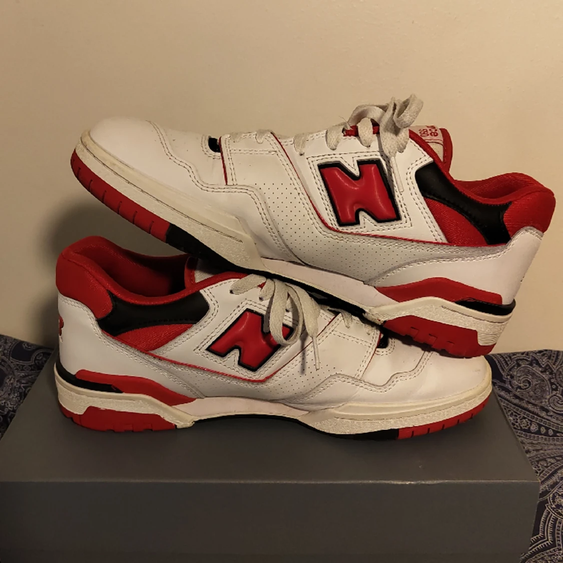 Knappt använda new balance 550s skick 9/10 finns pyttesmå creases som knappt syns Storlek 44 Skriv om du har några frågor eller vill ha fler bilder :)