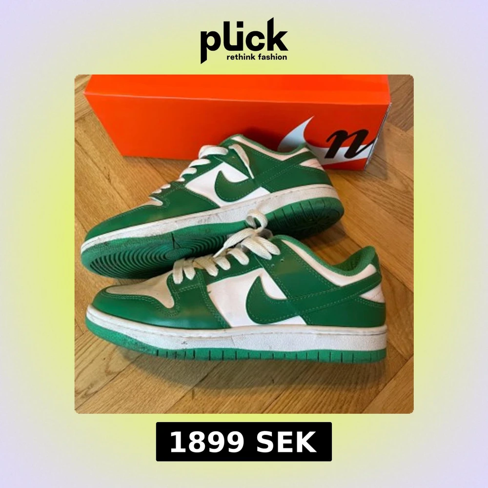Nike Dunk SB Low sneakers i fräscht vitt och grönt med klassisk snörning och rund tå. Skorna har en platt sula och är tillverkade i skinn och syntetmaterial. Perfekt för dig som gillar streetstyle och vill sticka ut med en ikonisk modell från Nike. Slutsåld modell som ej går att få tag i längre. Storlek 41, nypris 3999kr och jag säljer dem för 1899kr. Skriv om du är intresserad!😃