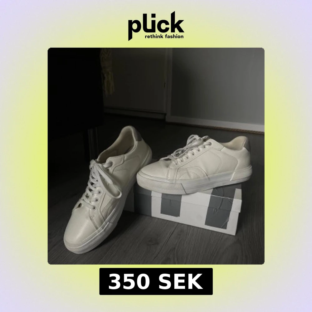 Säljer ett par stilrena vita sneakers från Pull&Bear. Skorna har en klassisk design med snörning och rund tå. Perfekta för en avslappnad look eller en fin kväll på stan. Köpta på zalando för 599kr för snart ett år sedan. Skorna är använda en gång ( på skolavslutningen i 9an ). Mycket fint skick, bara några få smutsfläckar på övre sula som inte bör vara några problem att få väck.