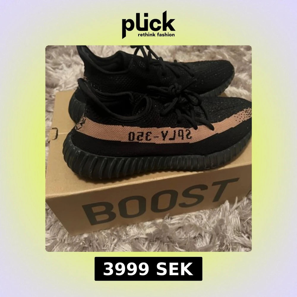 Säljer ett par äkta Adidas Yeezy Boost 350 V2 i färgen Black/Copper. Köpta 2nd hand (kvitto finns). Perfekta för dig som gillar streetwear och unika sneakers. Nypris ≈ 14 000kr