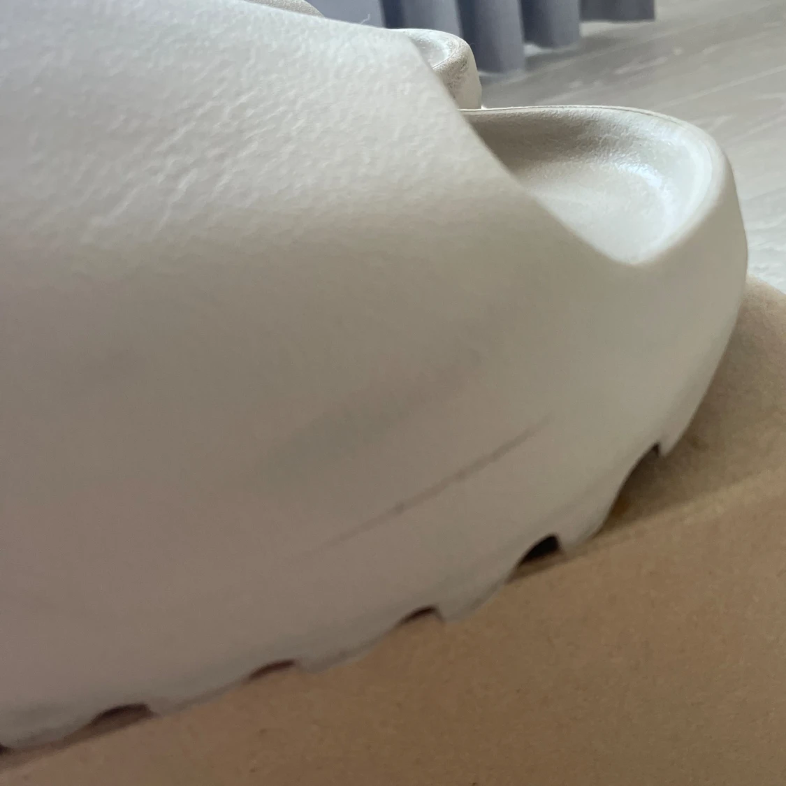 Säljer dessa Yeezy slides som är köpta på restocks hemsida. Finns en liten defekt som man kan se på bild två men syns knappt. Skulle säga att de passar storlek 42 Tveka inte på att komma med frågor🌟