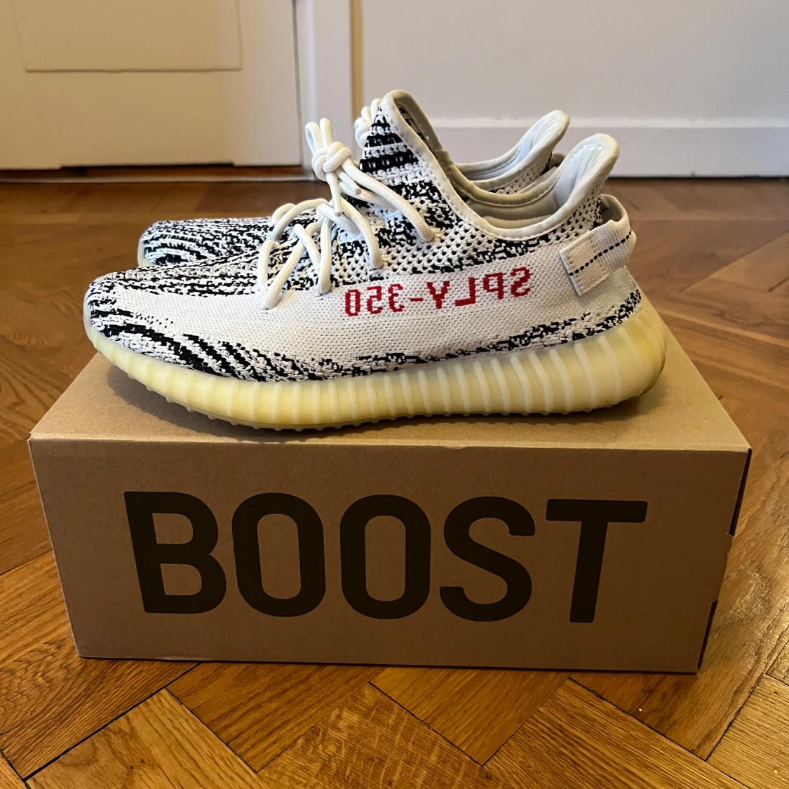 Yeezy 350 Zebra i storlek 42 2/3 (US 9). Använda men i bra skick.