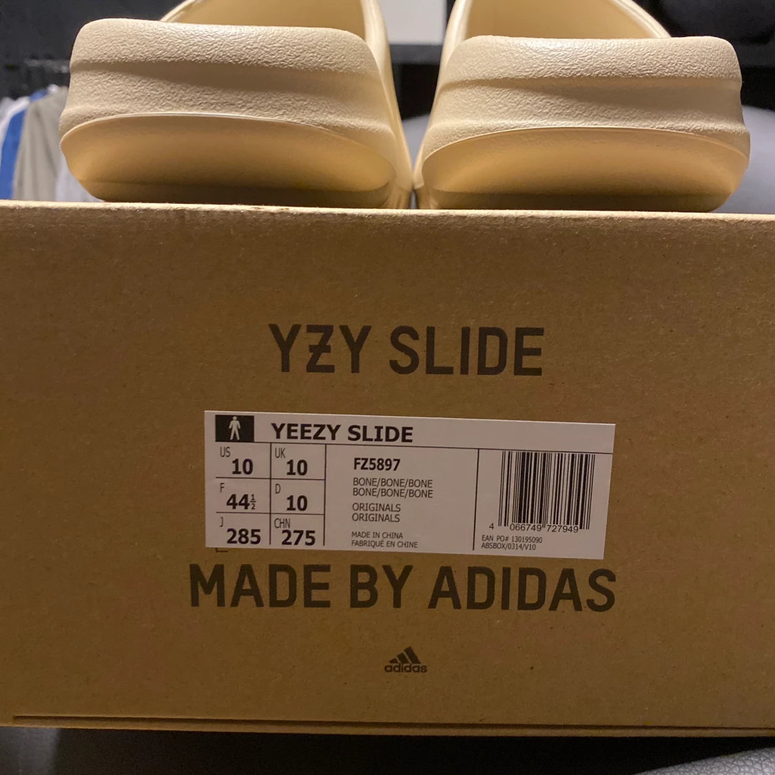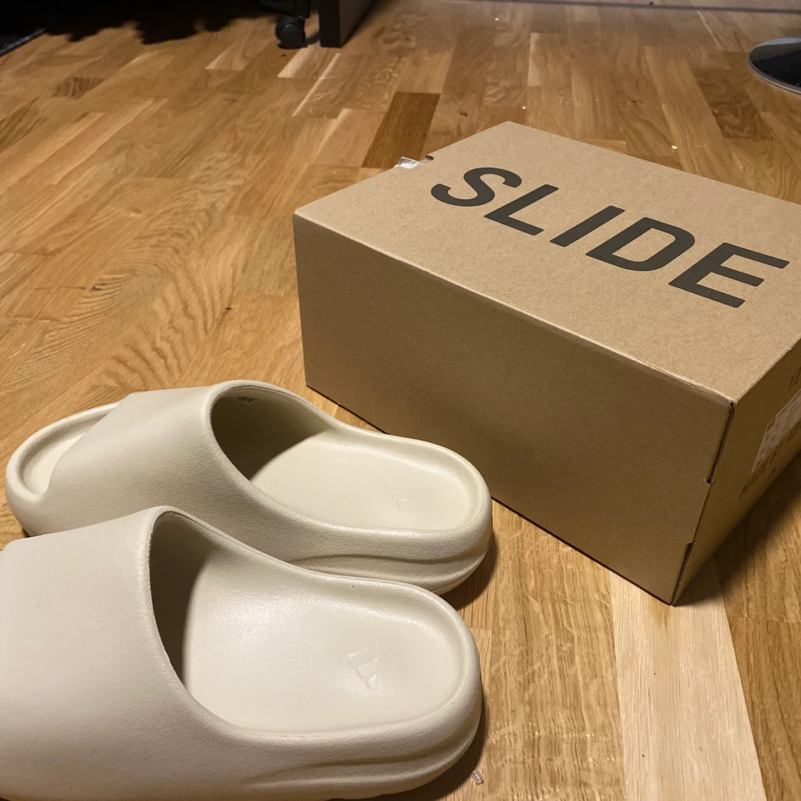 Yeezy slide BONE storlek 44,5 passar även alla storlekar som 41, 42, 43. Skriv ifall du vill ha mer bilder. HELT ÄKTA YEEZY SLIDE. Dom är beige vita. HELT NYA ALDRIG ANVÄNDA.