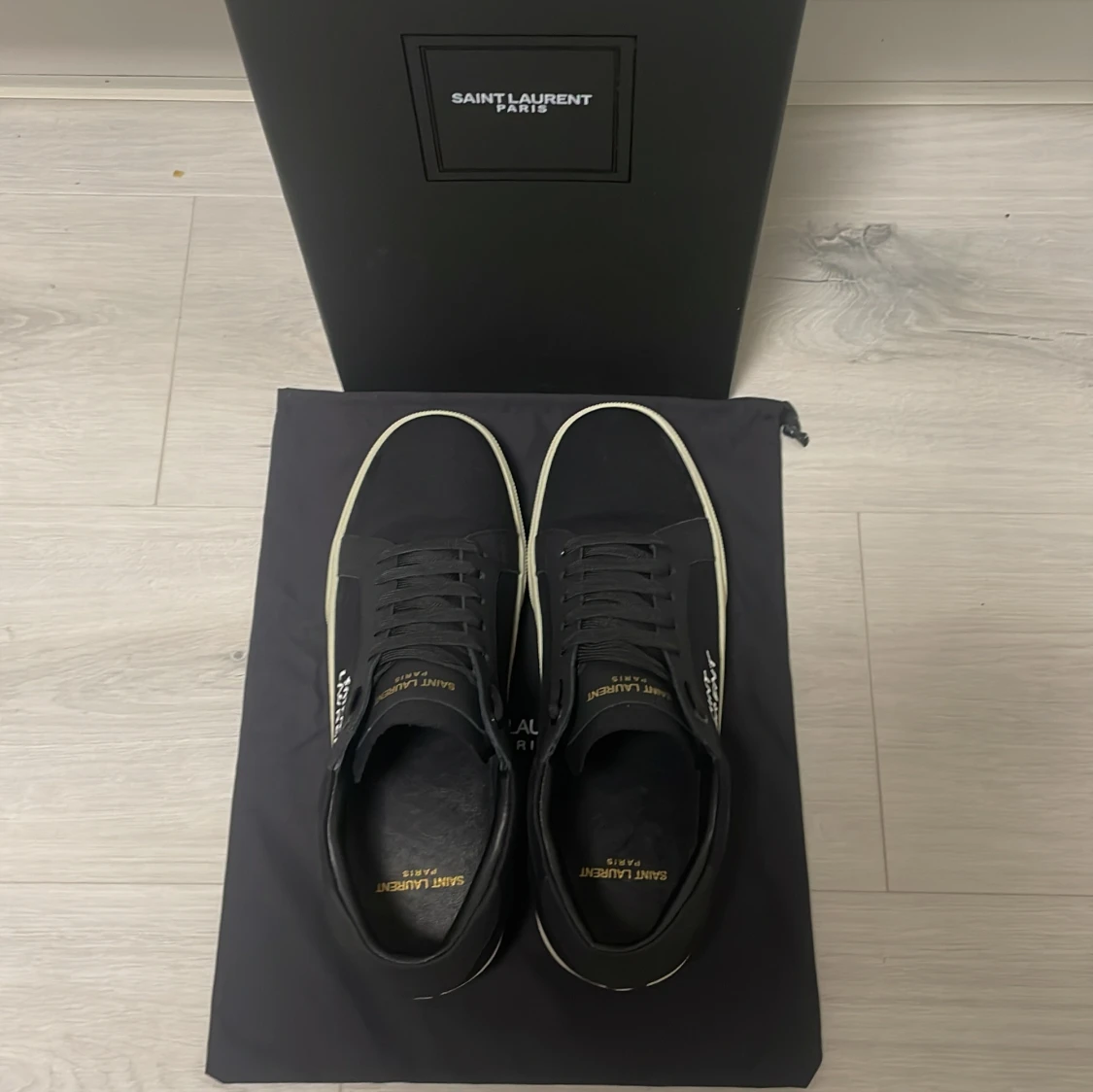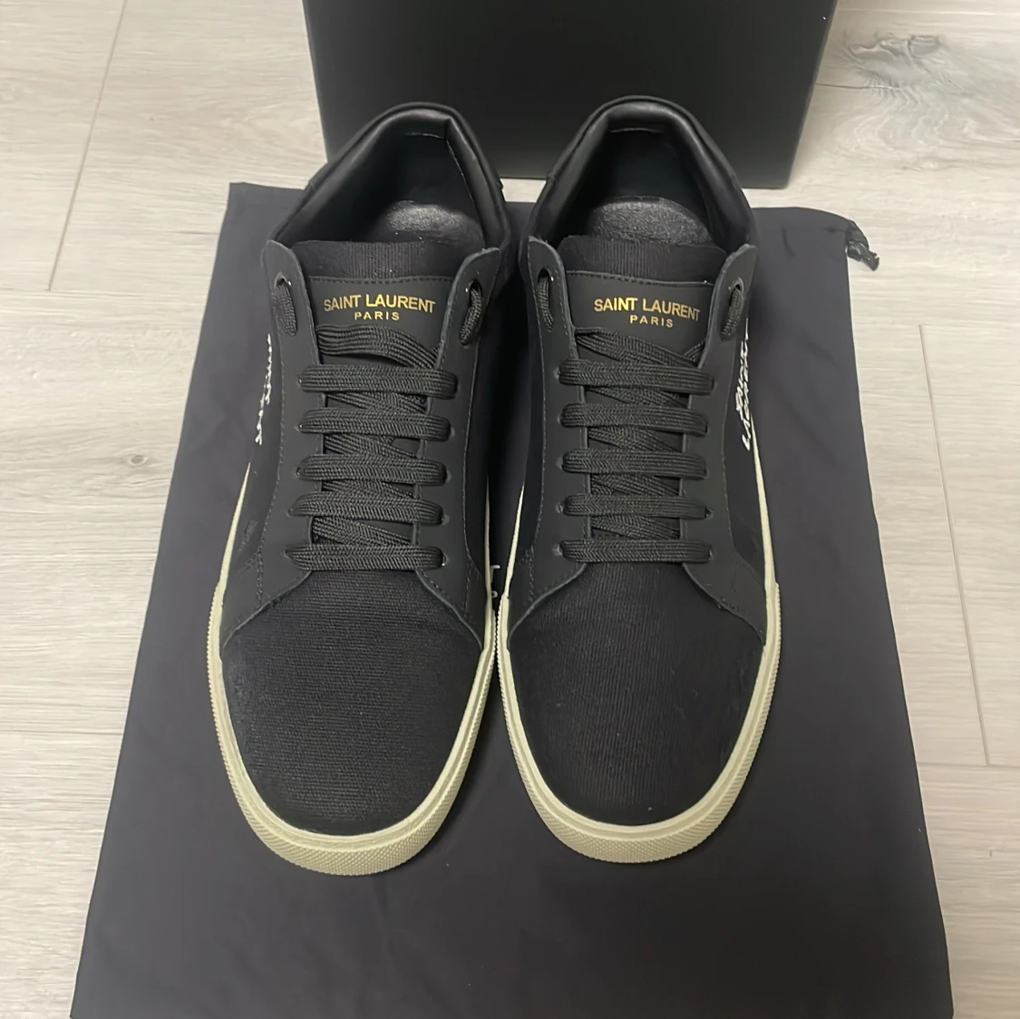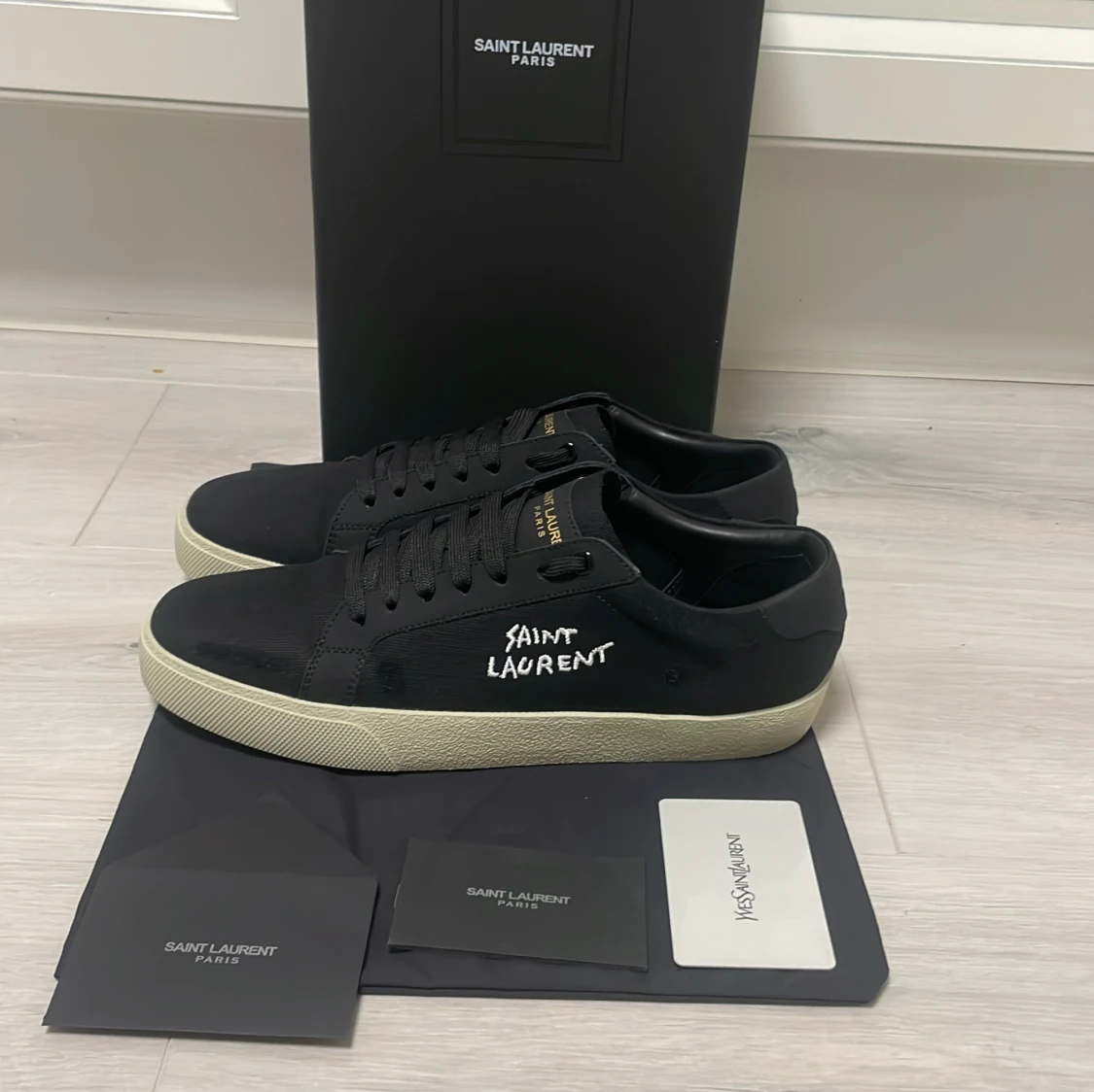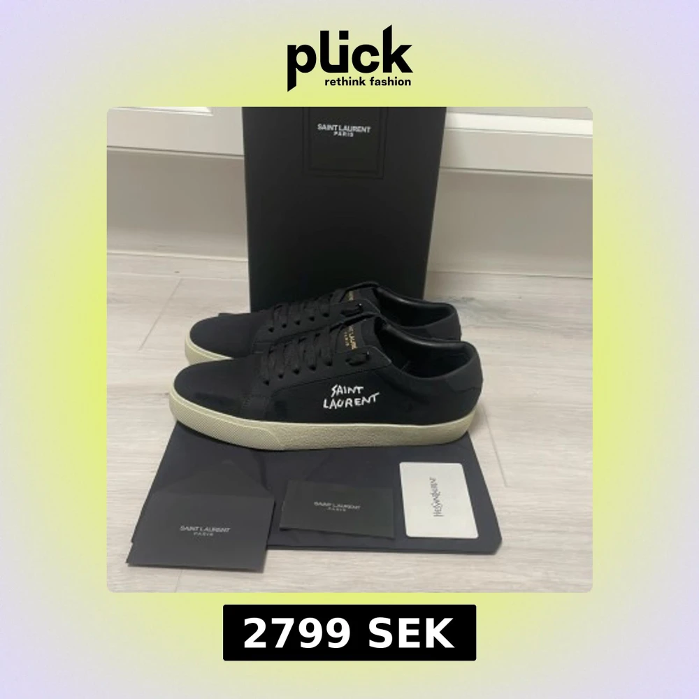 Tja! Säljer nu mina riktigt feta Saint Laurent skor i nyskick, dem är i storlek 42, använda 1 gång, (de som ingår är skorna, box, dustbag och tags ingår vid köp av skon tyvärr finns de inget kvitto!!!!), skriv om ni har några frågor eller funderingar🙌🙌🙌