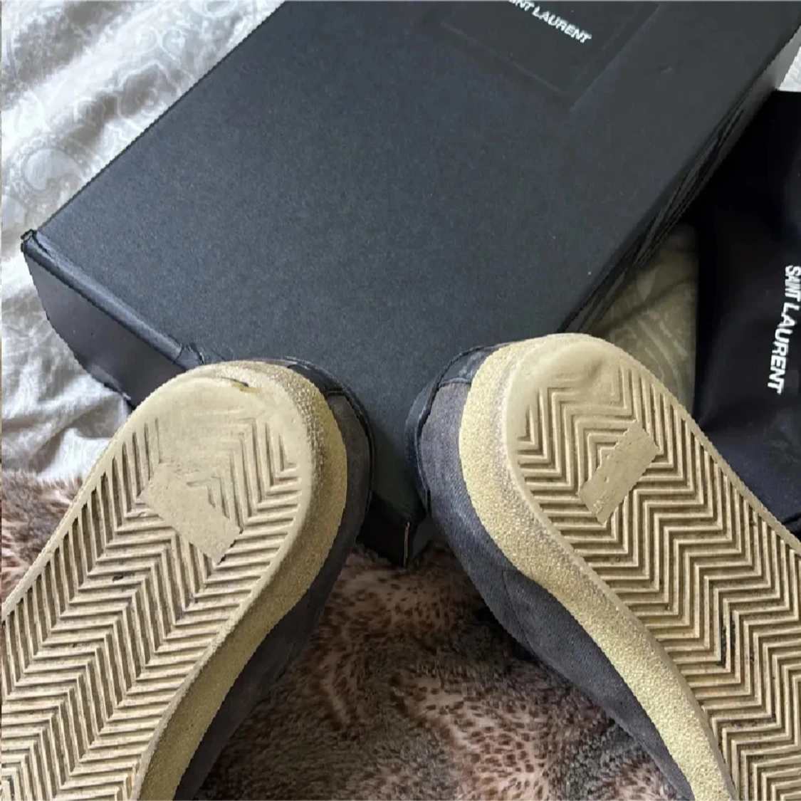 SAINT LAURENT SKOR i använt skick. Sällsynt modell men riktigt snygga enligt mig och många. Storlek 42 1/2 men passar också 42 och 43. Nästan inga defekter förutom ett litet hål i sulan på vänster sko som är limmat. Pris är diskuterbart