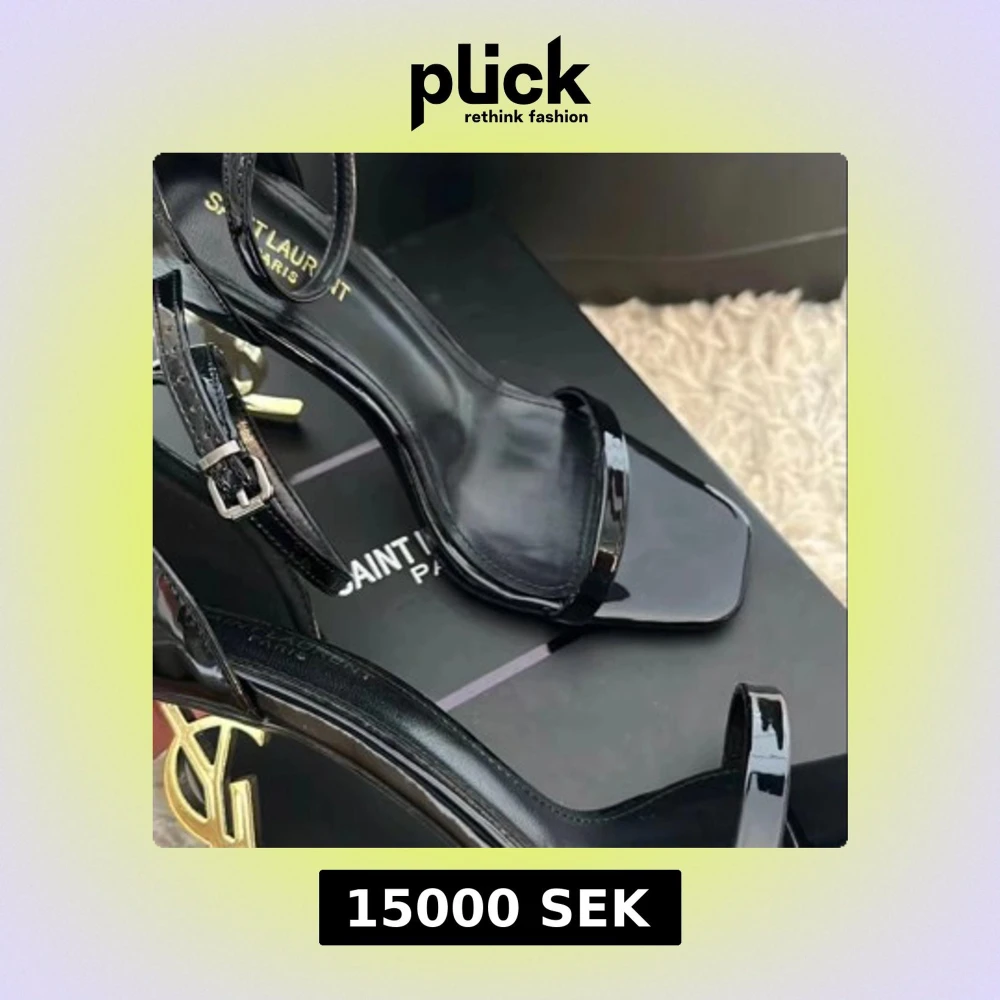 Säljer ett par svarta sandaler från Saint Laurent med ikonisk YSL-klack i guld. Skorna har smala remmar, öppen tå och hög klack. Tillverkade i glansigt skinn för en lyxig känsla. Jag skickar med kvitton såklart och deras original kartong samt påsen . Dem ser fortfarande nya ut, har bara haft på mig dem tre gånger