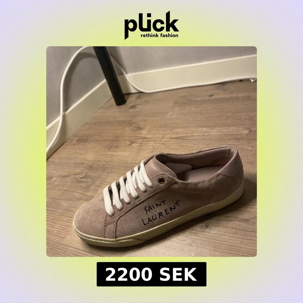 Snygga beige sneakers i mocka från Saint Laurent med vit snörning och handskriven logga på sidan. Perfekta för en stilren look. Knappt änvända och i mycket bra skick storlek 40 men är stor i storlek så passar 41 också. Prisk kan diskuteras. Har även äktighetsbevis