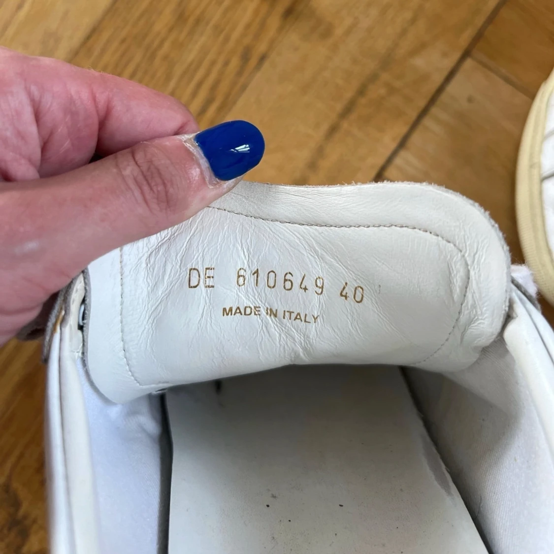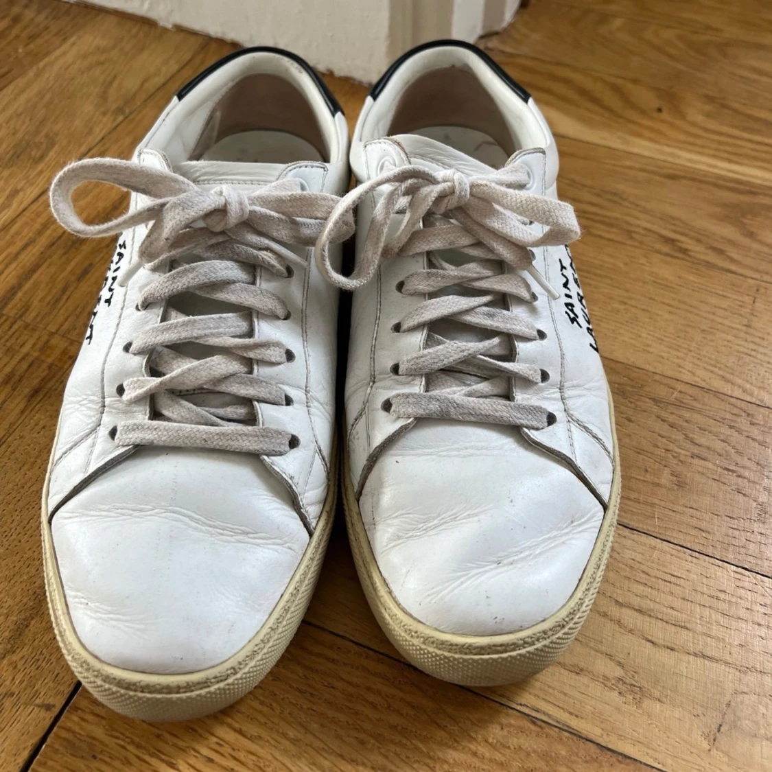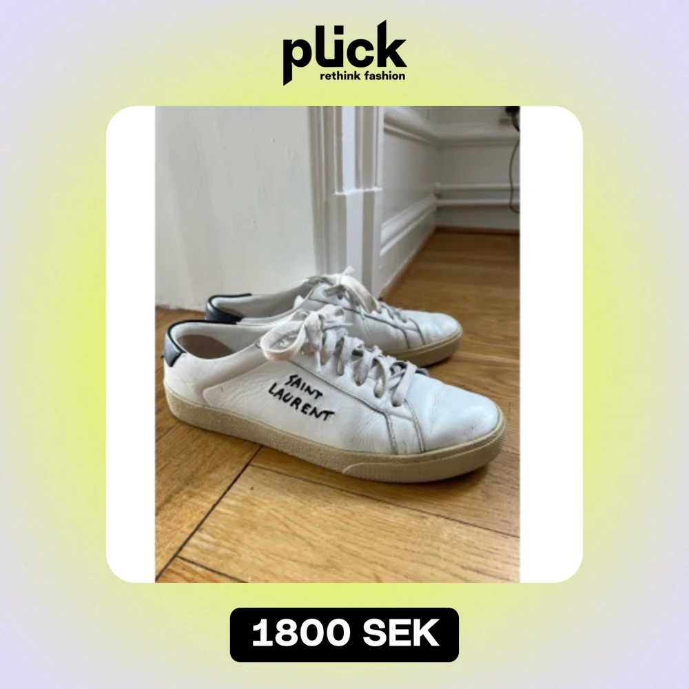 Vita sneakers från Saint Laurent i storlek 40. Köpta 2021 begagnat men har efter det varsamt använt dom. Med ett par nya skosnören blir dom som nya! Digitalt kvitto finns. Nypris 7000kr